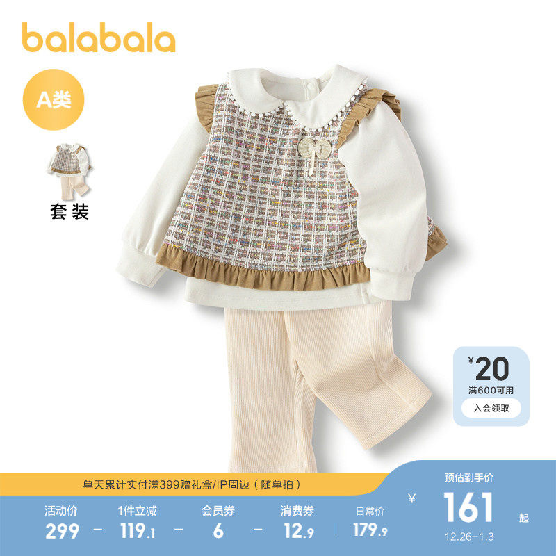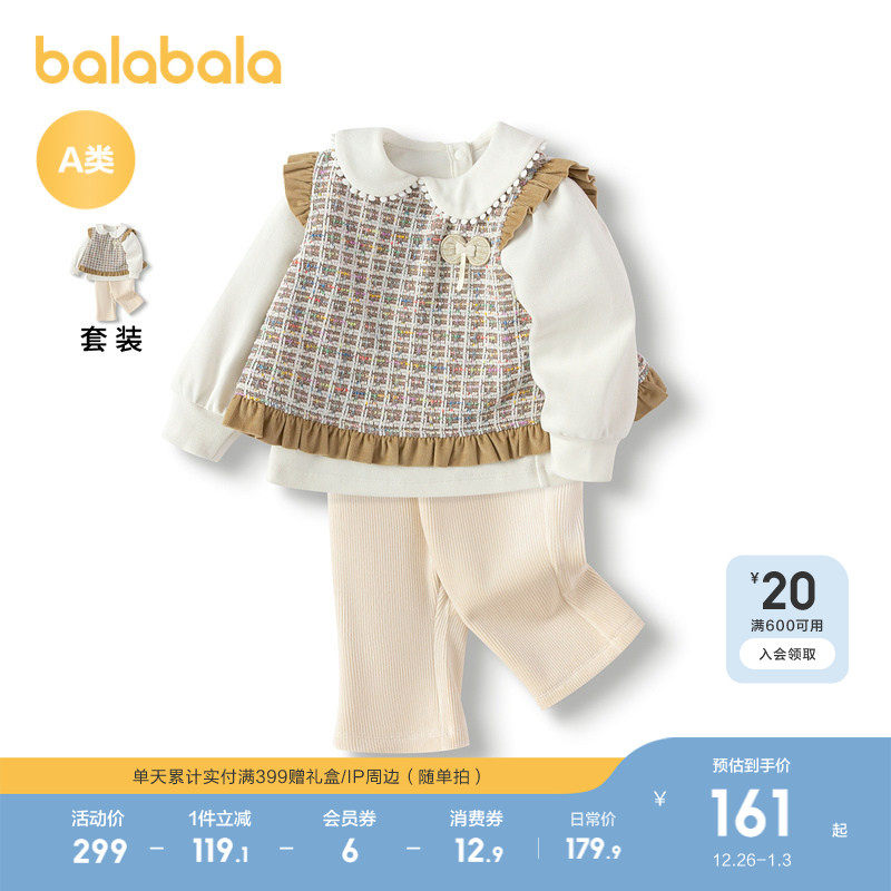 巴拉巴拉宝宝套装秋冬女童三件套休闲加绒保暖洋气时髦精致气质萌
