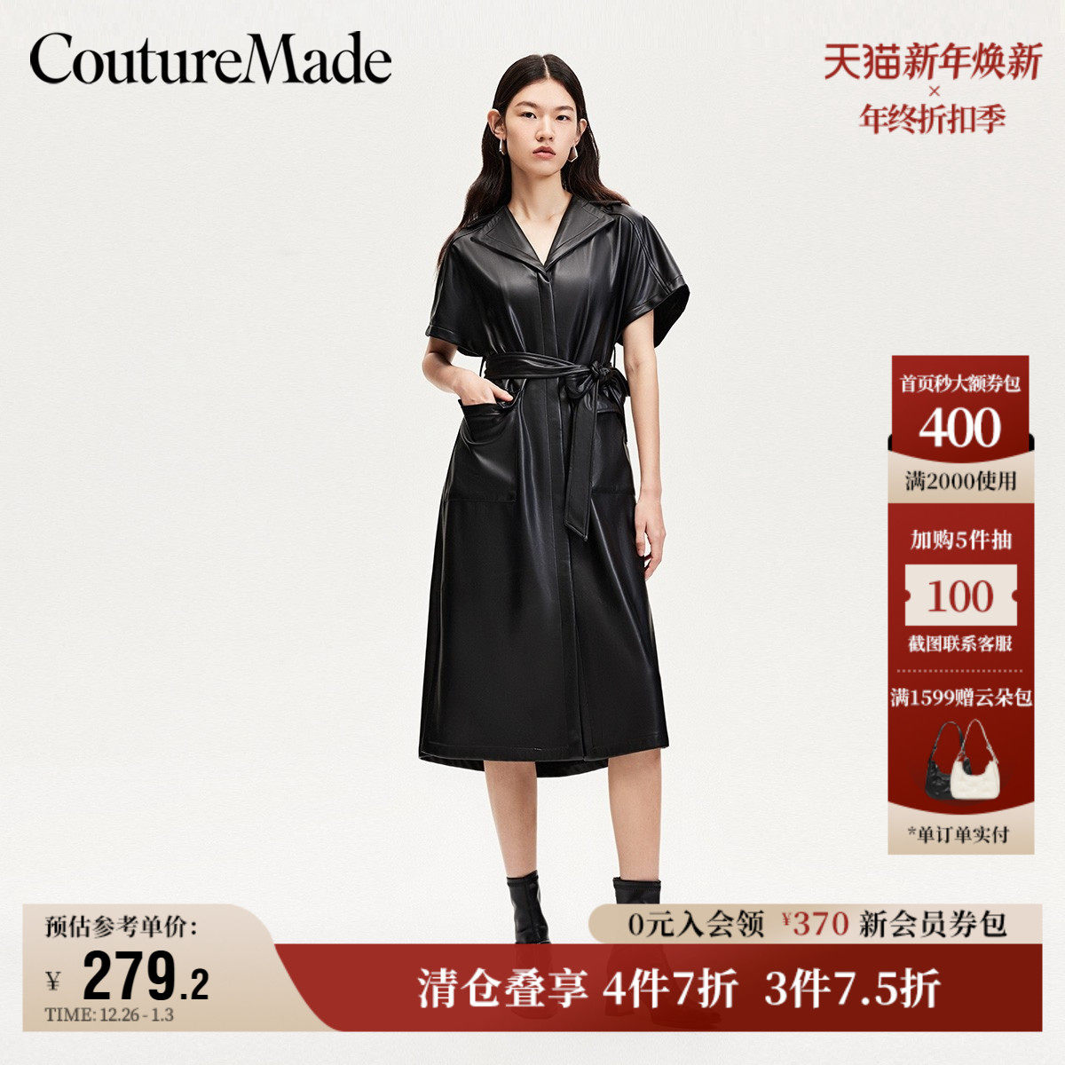Vero Moda奥莱连衣裙秋冬新款系带PU仿皮长裙个性翻领街头风短袖