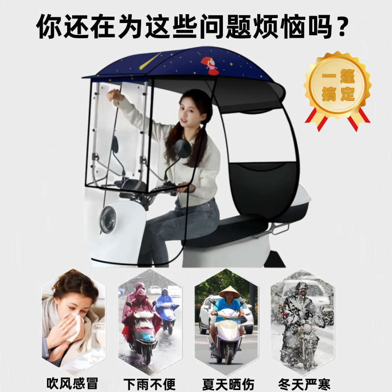 电动车雨棚蓬防风电瓶车挡风罩摩托车雨伞遮阳伞防雨棚电车防晒罩