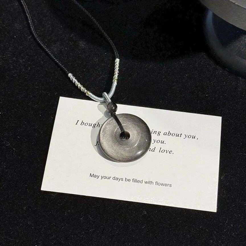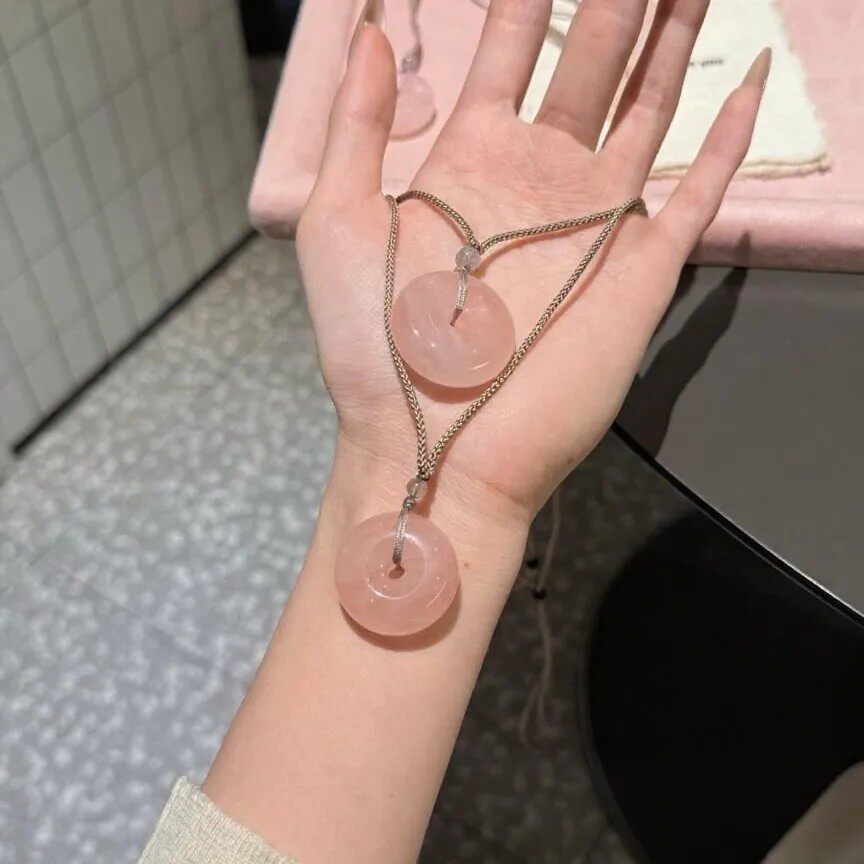 粉水晶银耀石平安扣情侣送男友送女友情人节七夕礼物黄龙玉吊坠