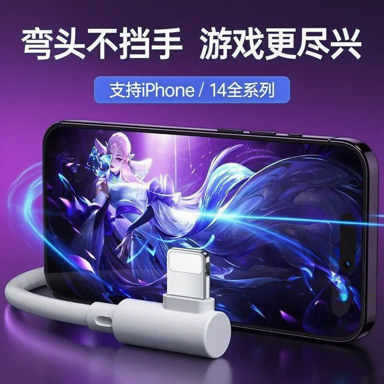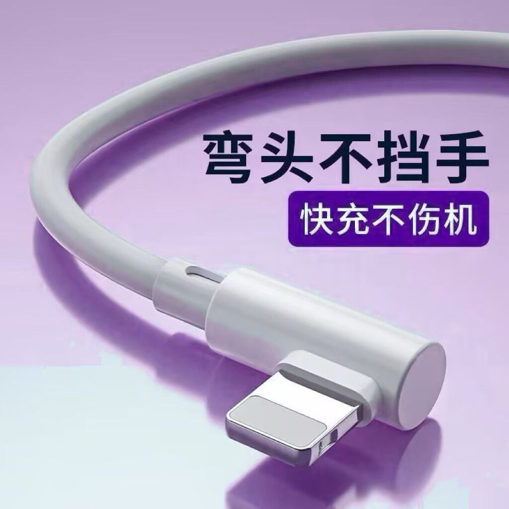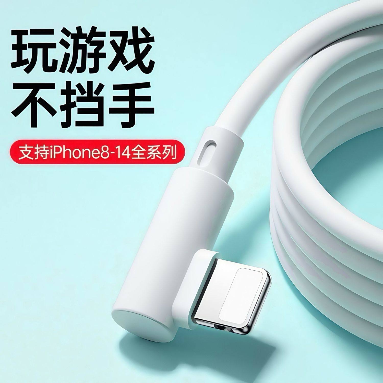 苹果弯头快充线适用iPhone14/13/12/XS/11/8p手机游戏数据线ipad