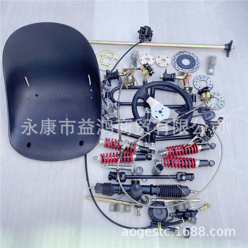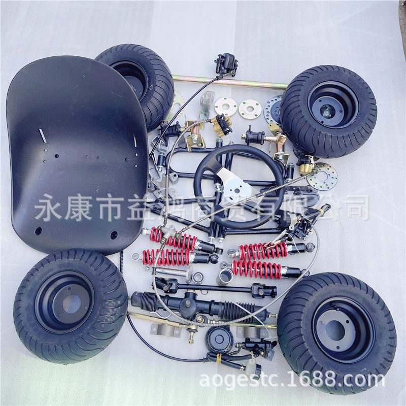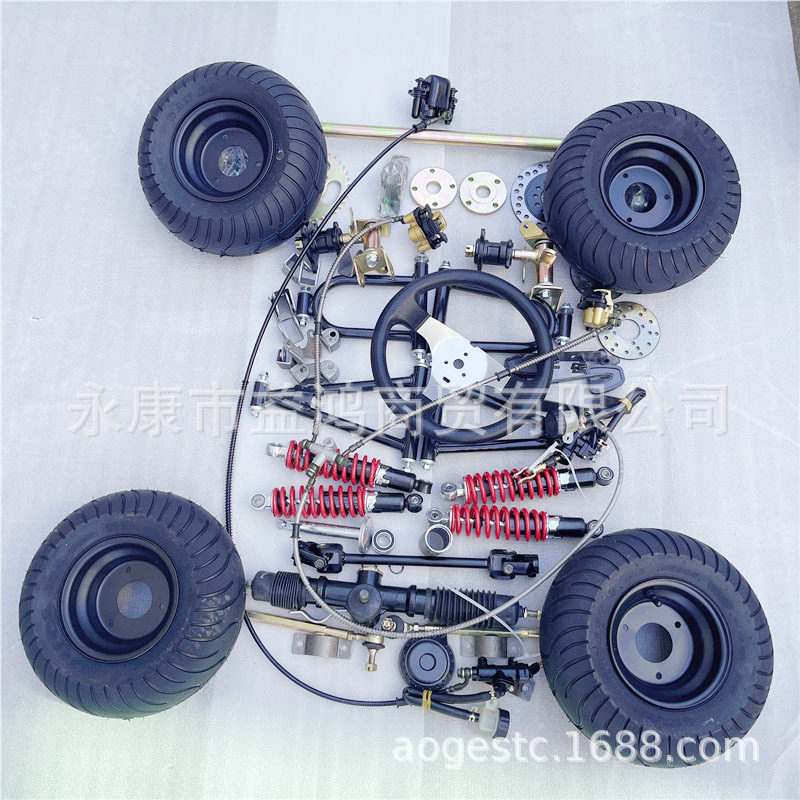 改装卡丁车配件自制四轮车前后碟刹悬挂方向盘转向1米后轴6寸轮胎