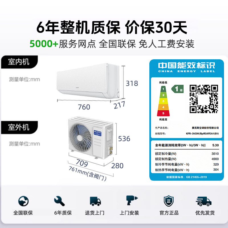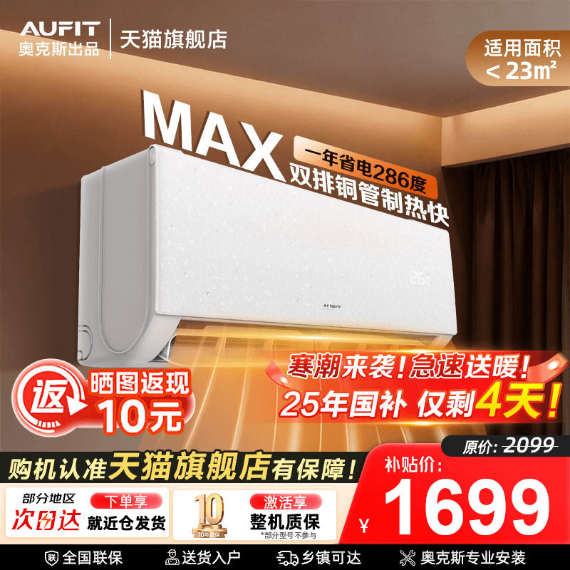 立减20%】AUFIT空调奥克斯出品大1.5匹一级能效挂机变频1匹家用
