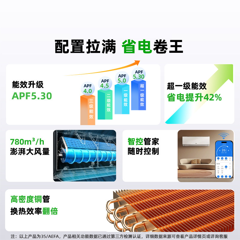 海尔小红花空调新一级能效1.5匹变频冷暖家用劲爽挂机35LCA