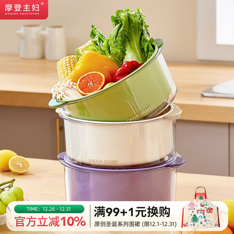 摩登主妇洗菜盆沥水篮新款厨房家用洗水果菜篮子多功能漏网滤水篮