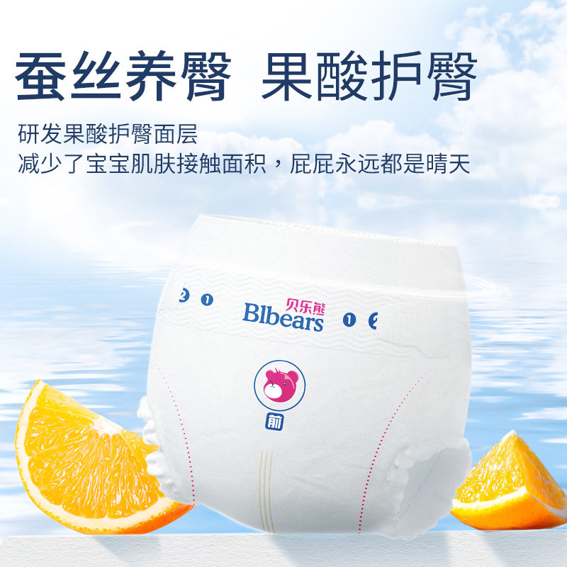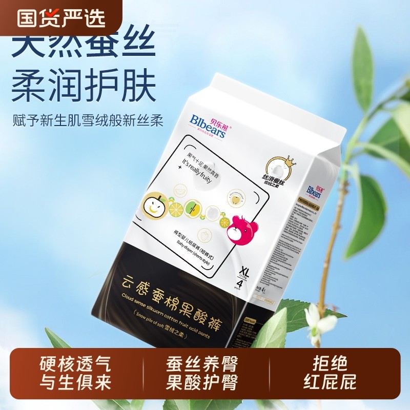 贝乐熊云感蚕棉果酸桑蚕丝奢柔尿不湿婴儿纸尿裤亲肤透气拉拉裤