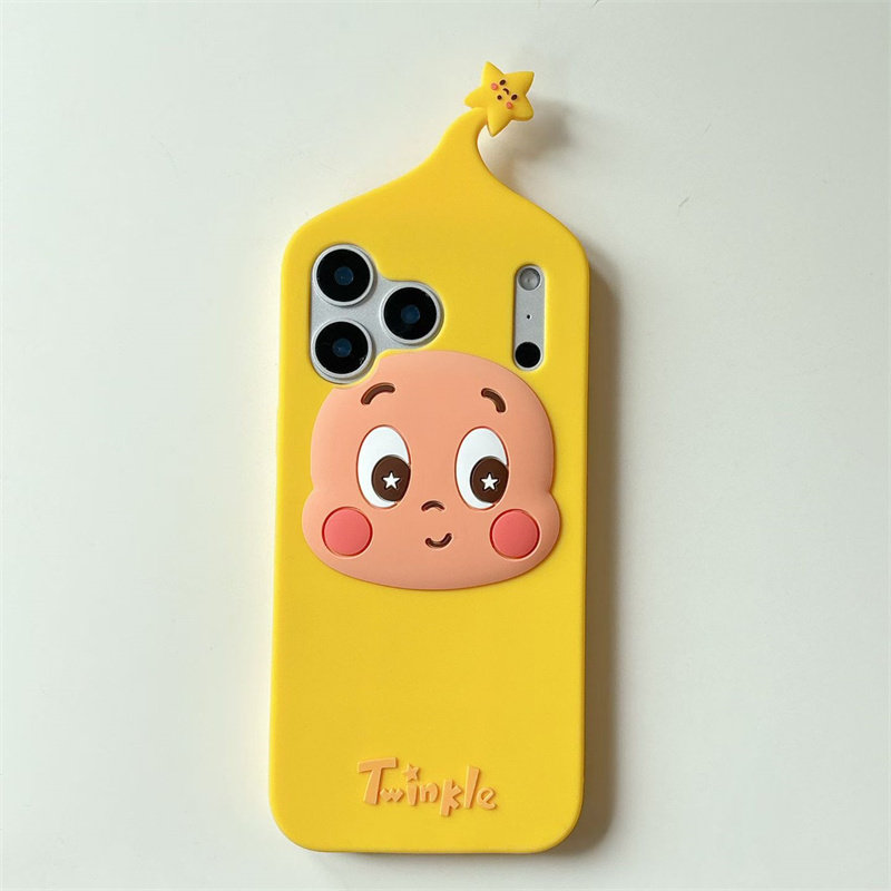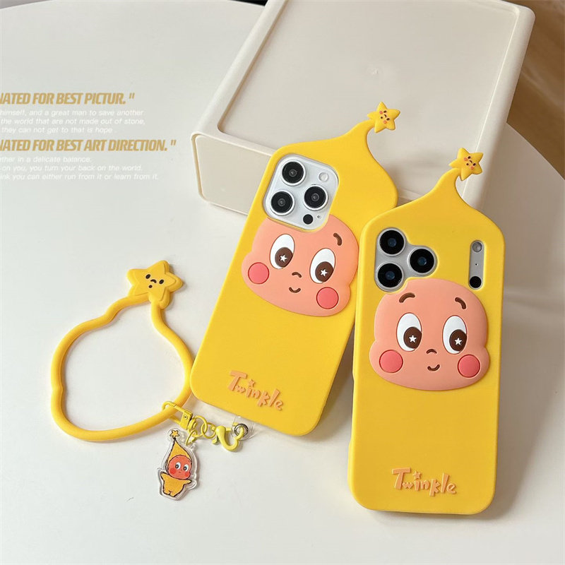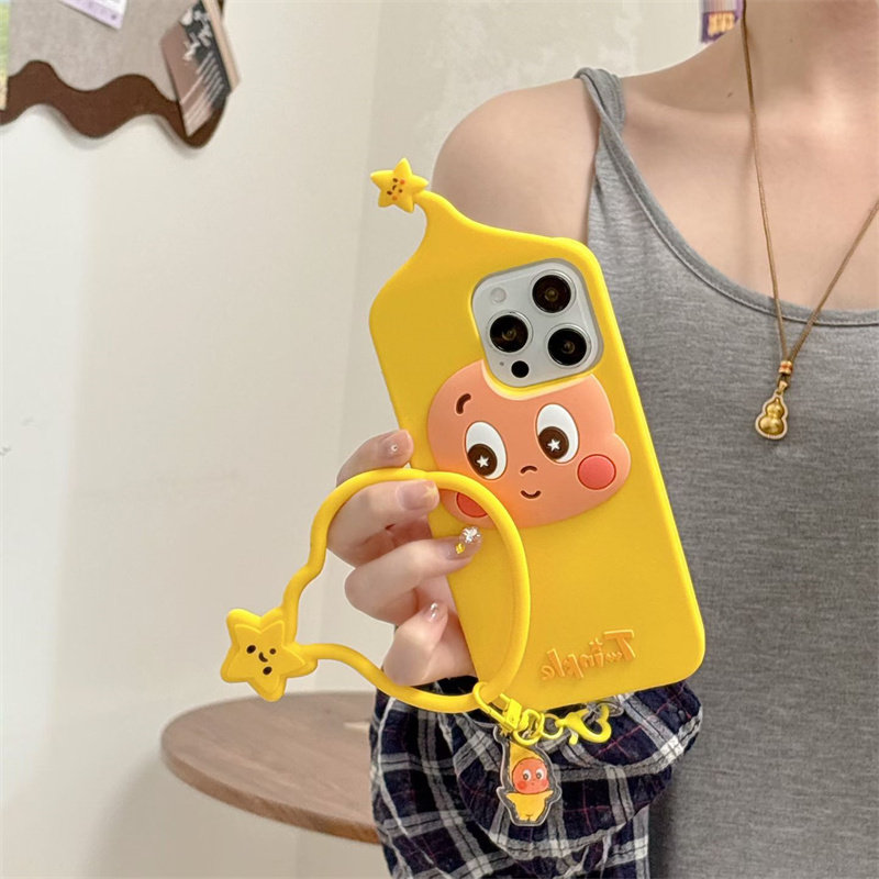 日韩网红立体卡通气球星星人适用苹果17硅胶手机壳少女心15promax高级感手带保护套14pro防摔iPhone16女款