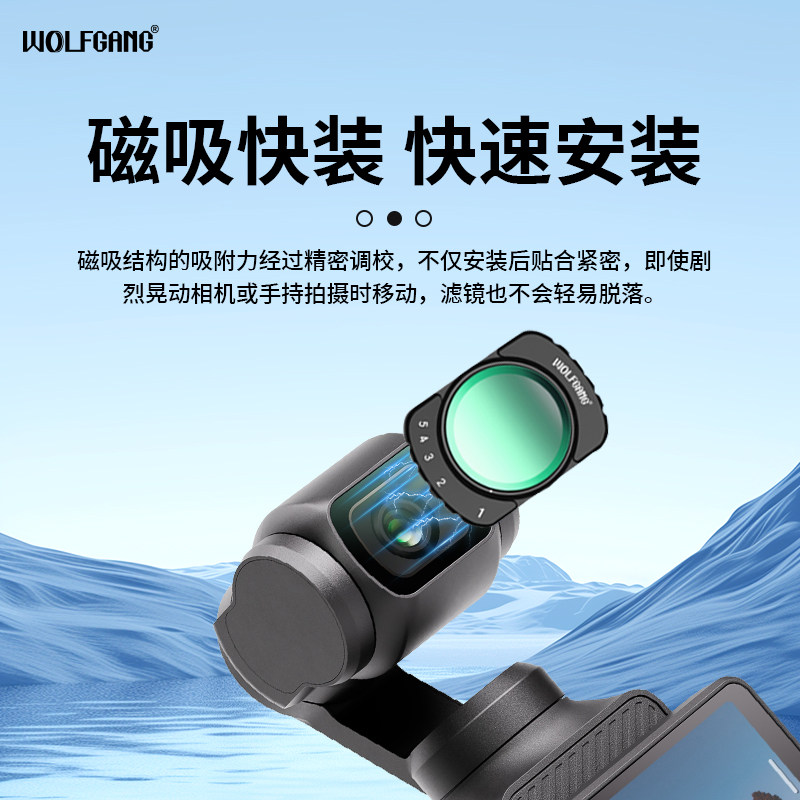 沃尔夫冈适用大疆pocket3滤镜套装磁吸可调nd减光镜uv镜cpl偏振镜黑柔滤镜柔光镜增广镜专业灵眸相机配件