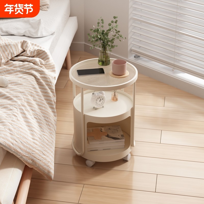 奶油风移动边几沙发边柜可移动茶几客厅零食小推车置物架床头桌子