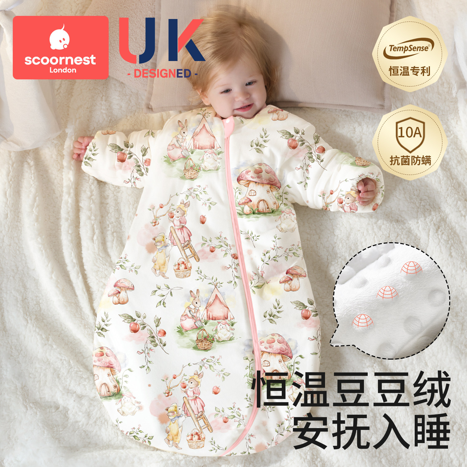 贝肽斯[肽柔]婴儿睡袋秋冬款儿童宝宝防踢被恒温分腿睡袋四季通用