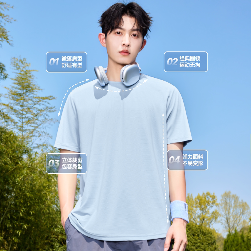 HM男装女装T恤春季透气圆领户外出游运动短袖内搭简约上衣0685816
