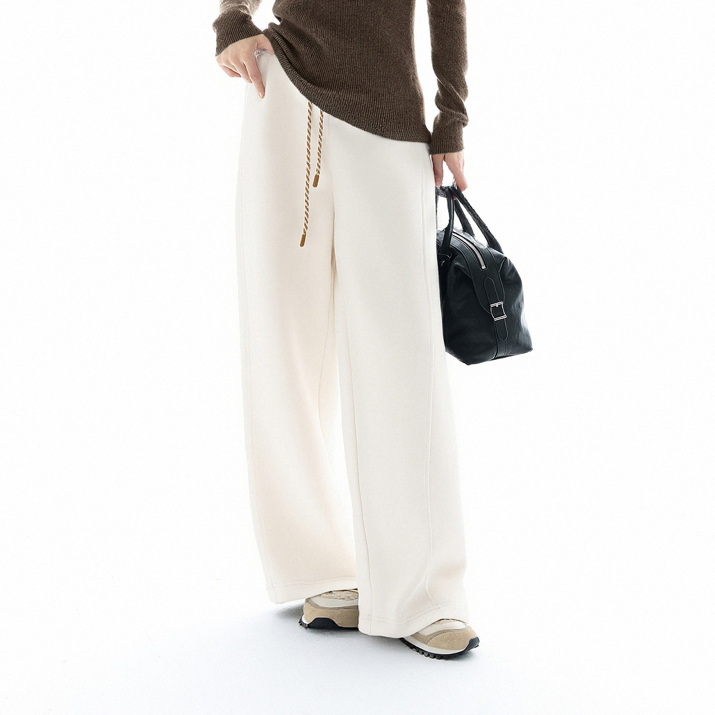 唐狮DESSO秋冬新款糯米裤高腰垂感宽松加绒直筒阔腿裤5