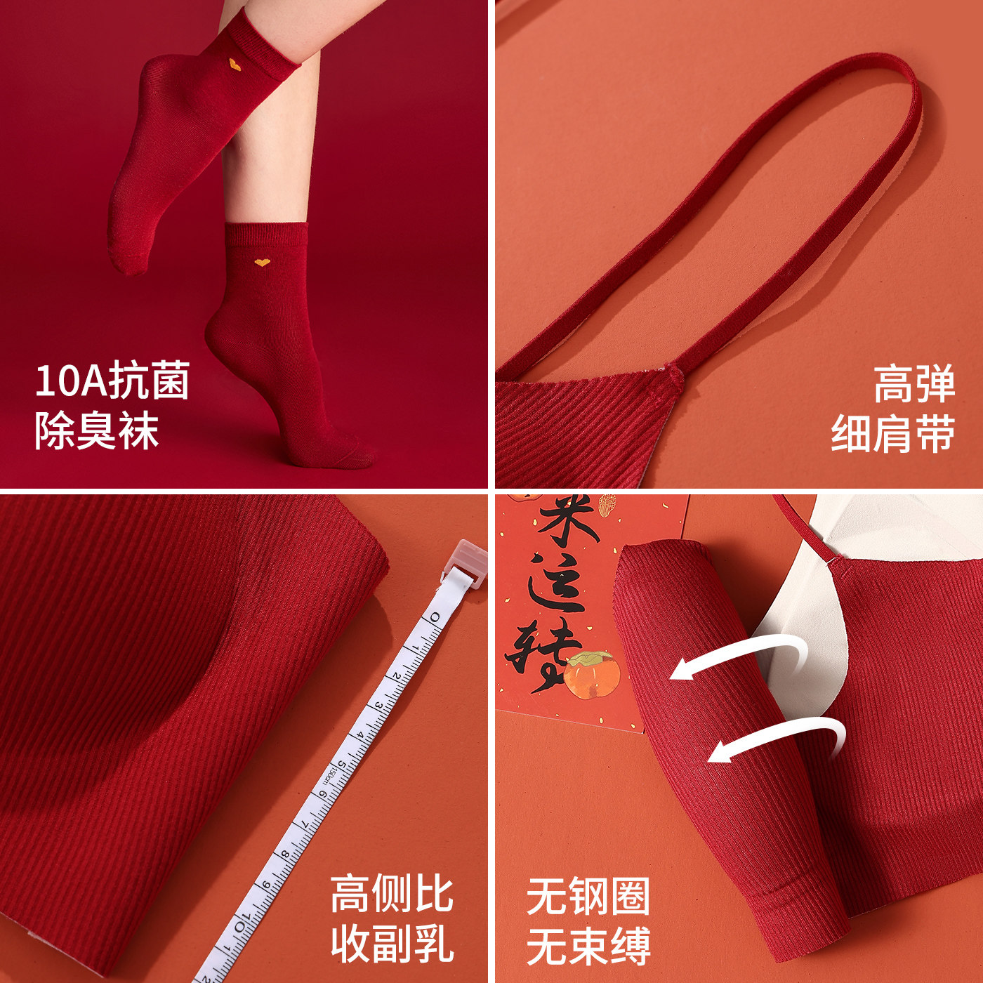 猫人本命年内衣套装女士小胸聚拢2026新款马年红色结婚无痕文胸罩
