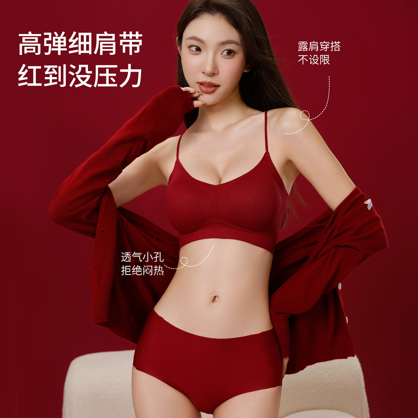 【宋轶同款风巢杯】安莉芳透气文胸大胸显小本命年红小胸聚拢内衣