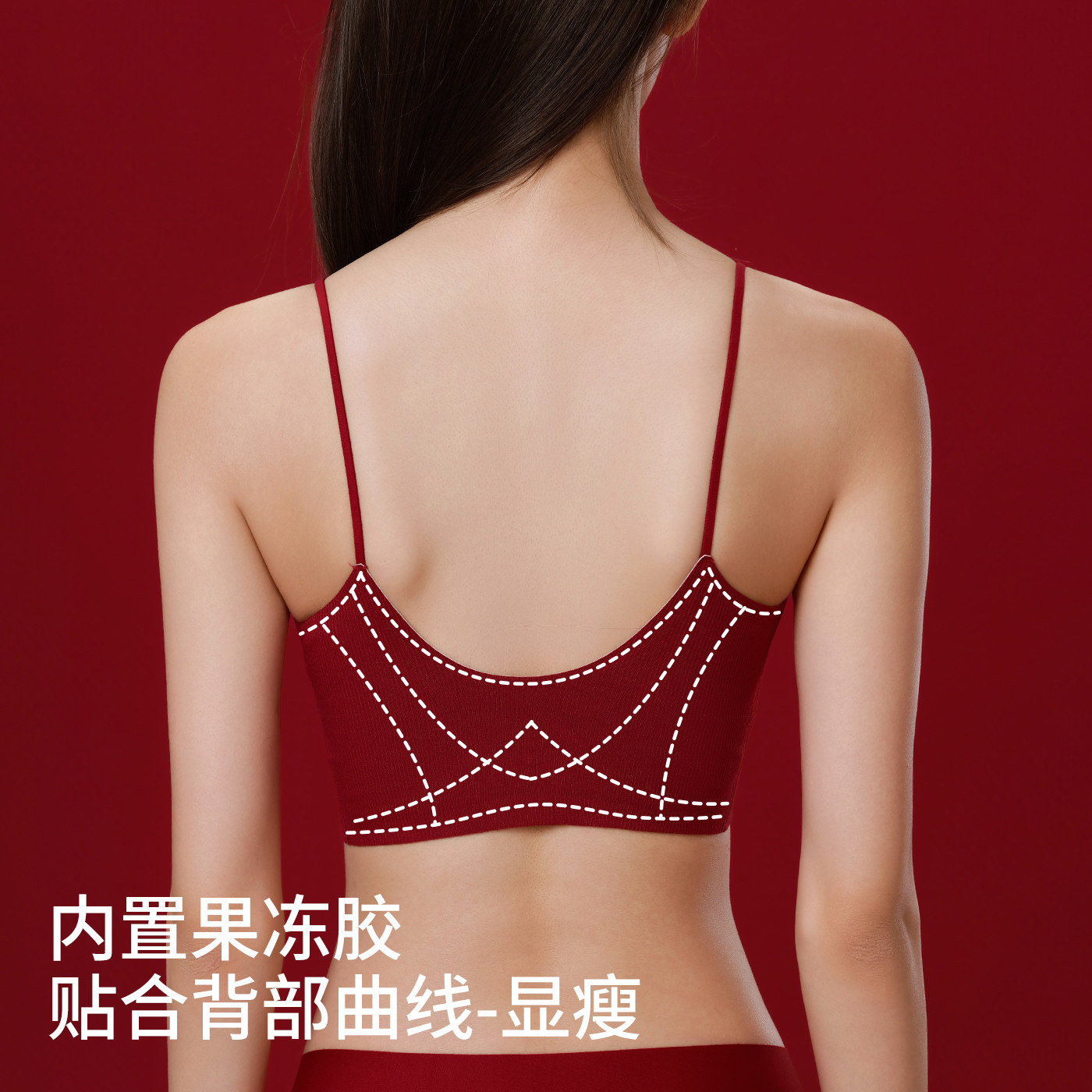 无痕美背抹胸内衣女小胸聚拢可外漏细肩带一体固定杯背心式文胸罩