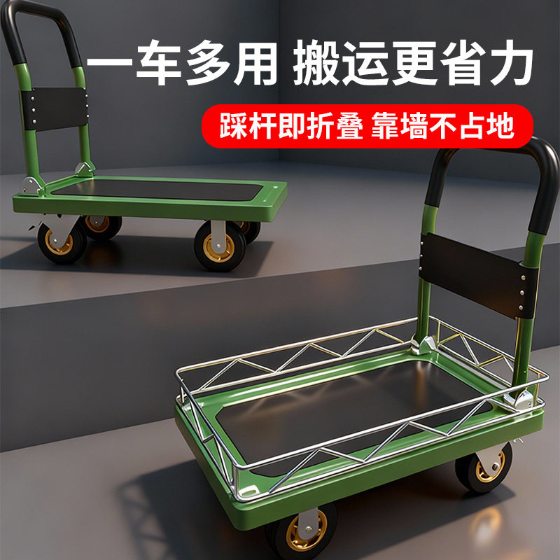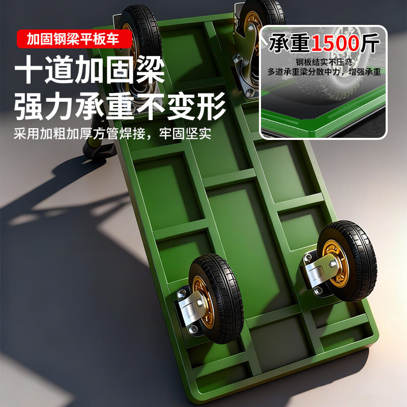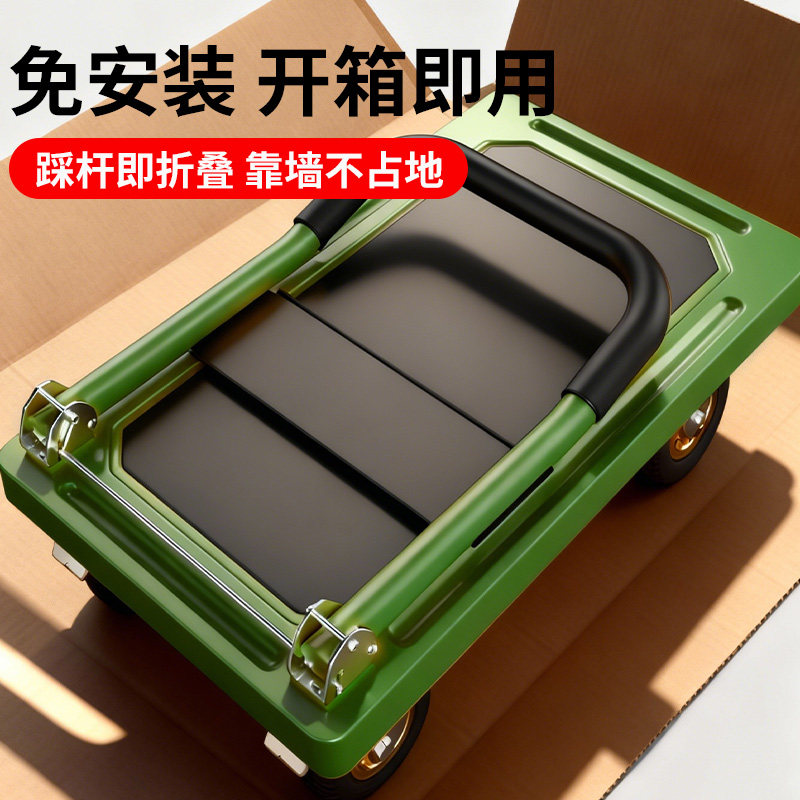 小推车拉货可折叠手推车平板车搬运拖车取快递手拉车加厚钢板拖车