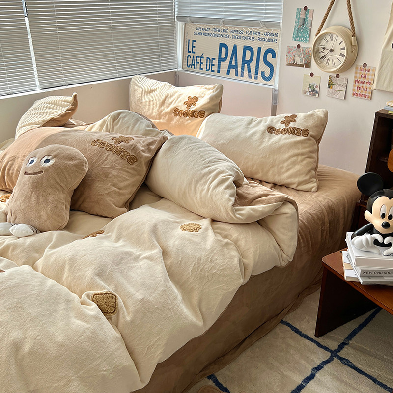秋冬季加厚四件套牛奶绒被套床单双面加绒被罩床笠学生宿舍三件套