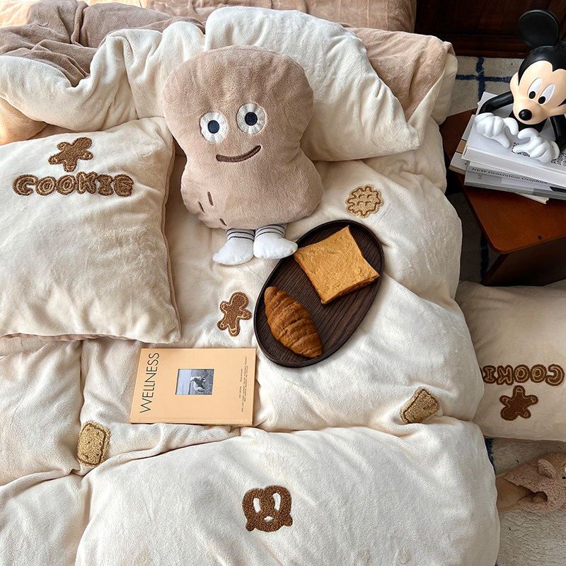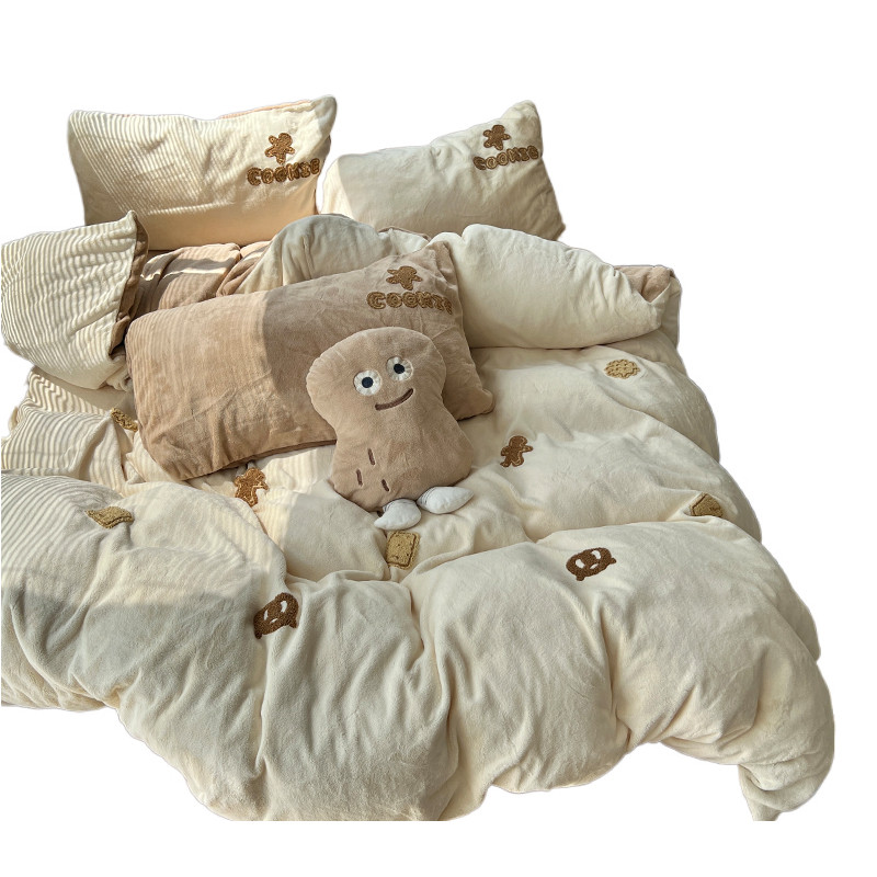 冬季牛奶绒四件套加厚加绒保暖床上用品珊瑚绒法莱绒被套床单冬天