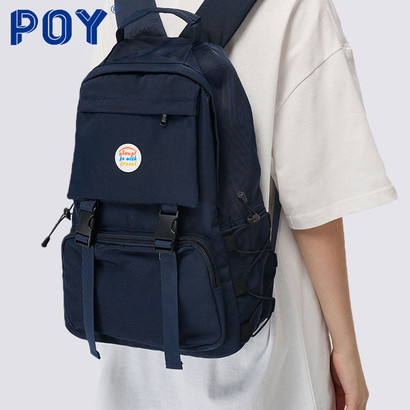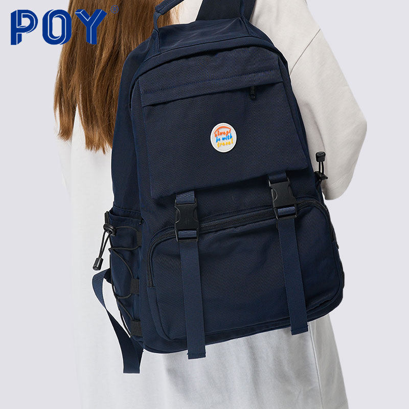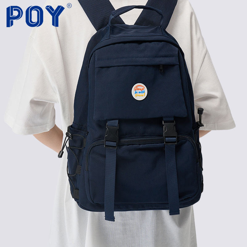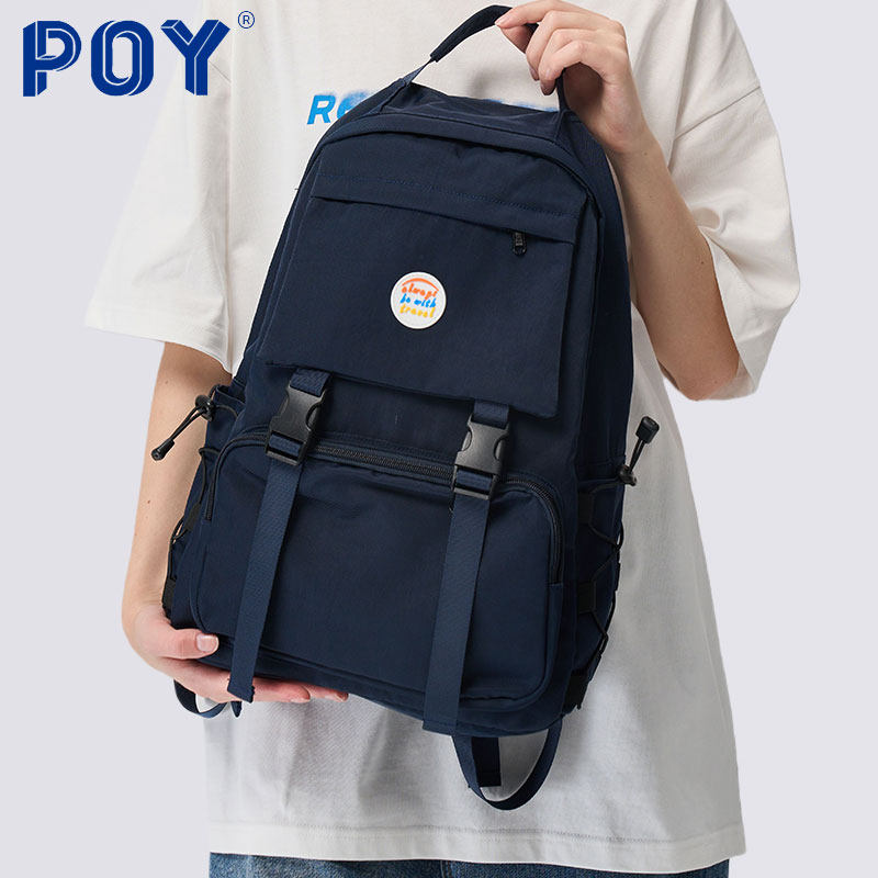 POY®日系双肩包女大学生背包初中高中生美式复古男大容量小众书包