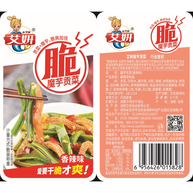 艾妍魔芋贡菜散装独立小包网红香辣开袋即食宿舍追剧小吃约9g/袋