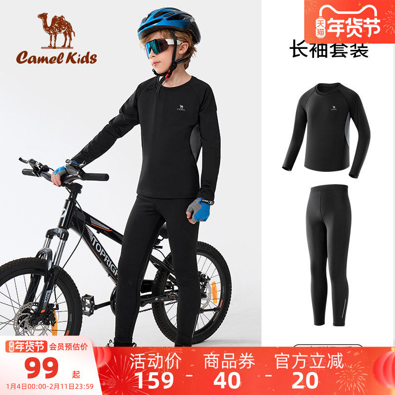 骆驼儿童健身套装2026春季新款紧身衣训练服运动服跑步篮球足球服