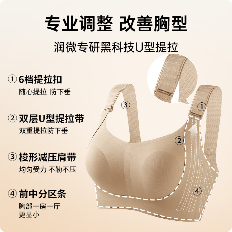 润微提拉内衣女大胸显小无痕提拉防下垂聚拢收副乳胸罩爆款文胸