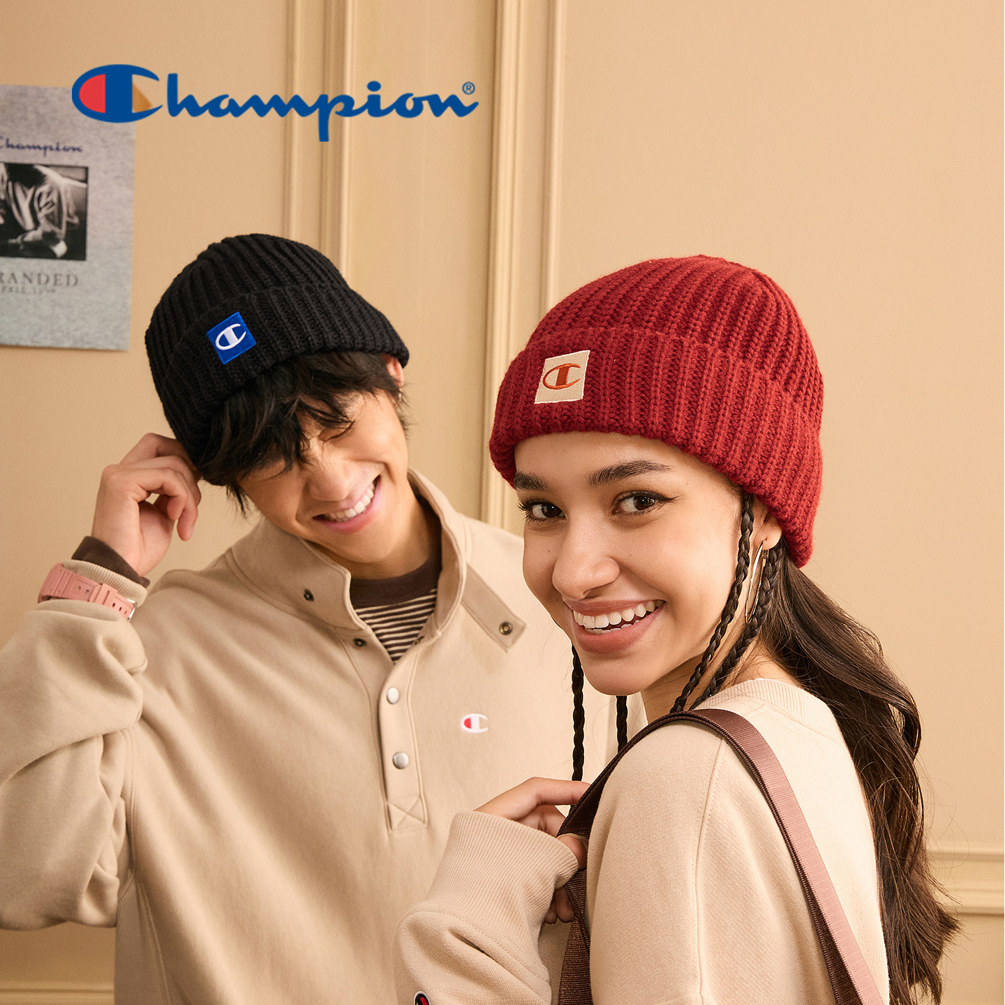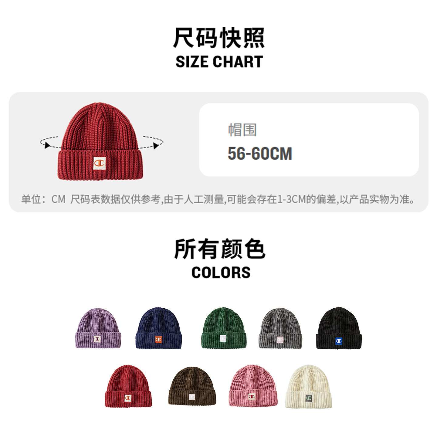 champion冠军25秋季新品针织帽纯色冬帽保暖冷帽男女新年红帽子