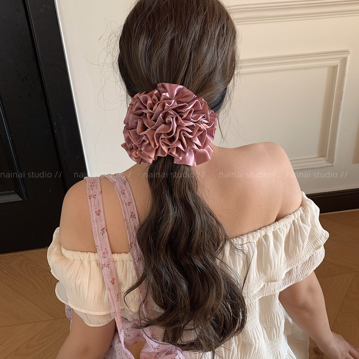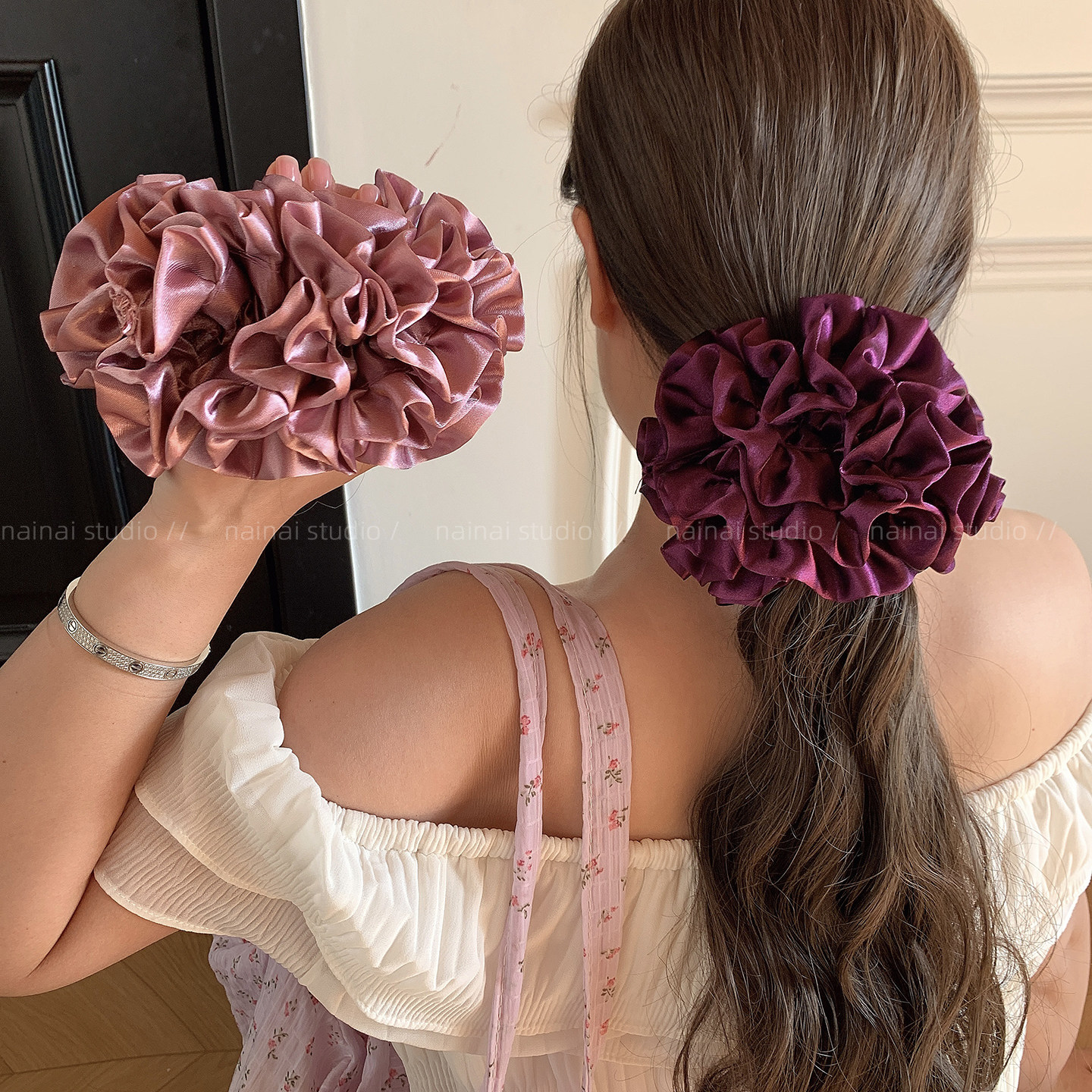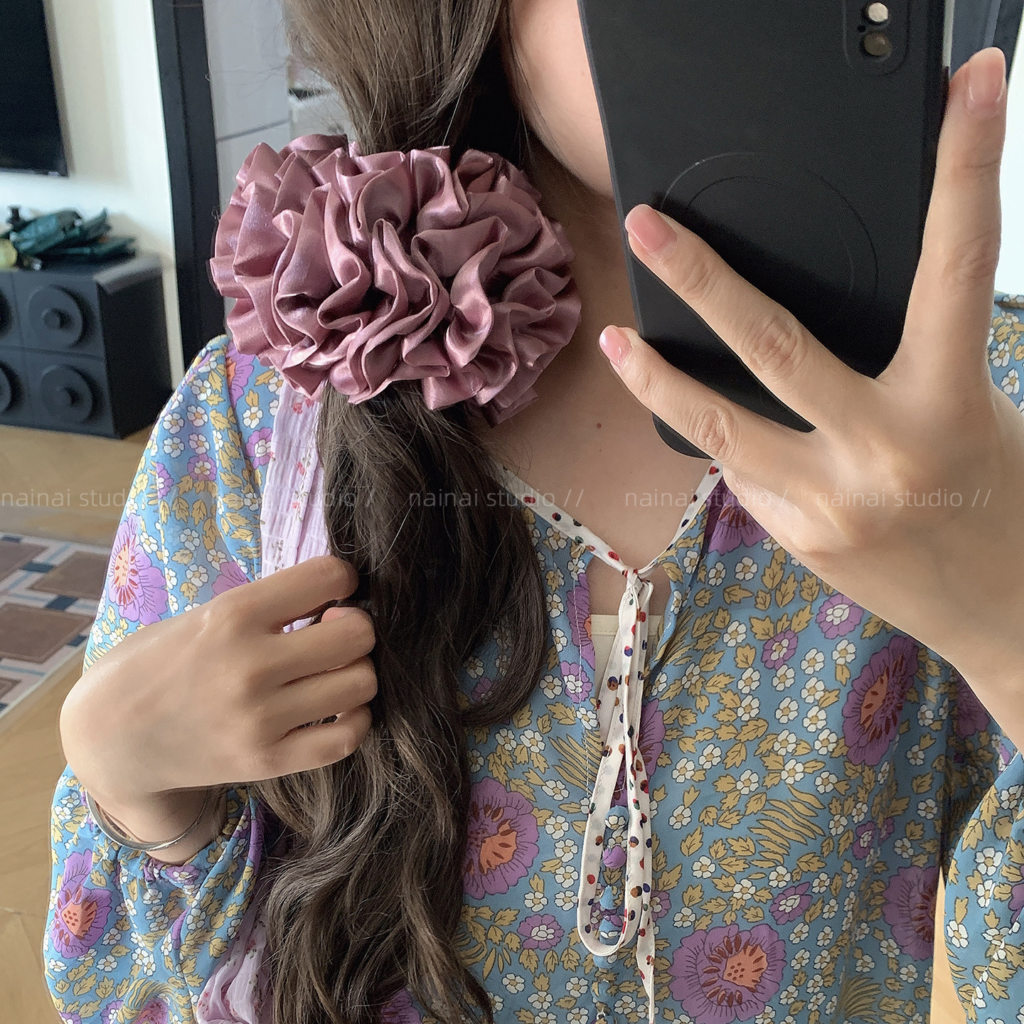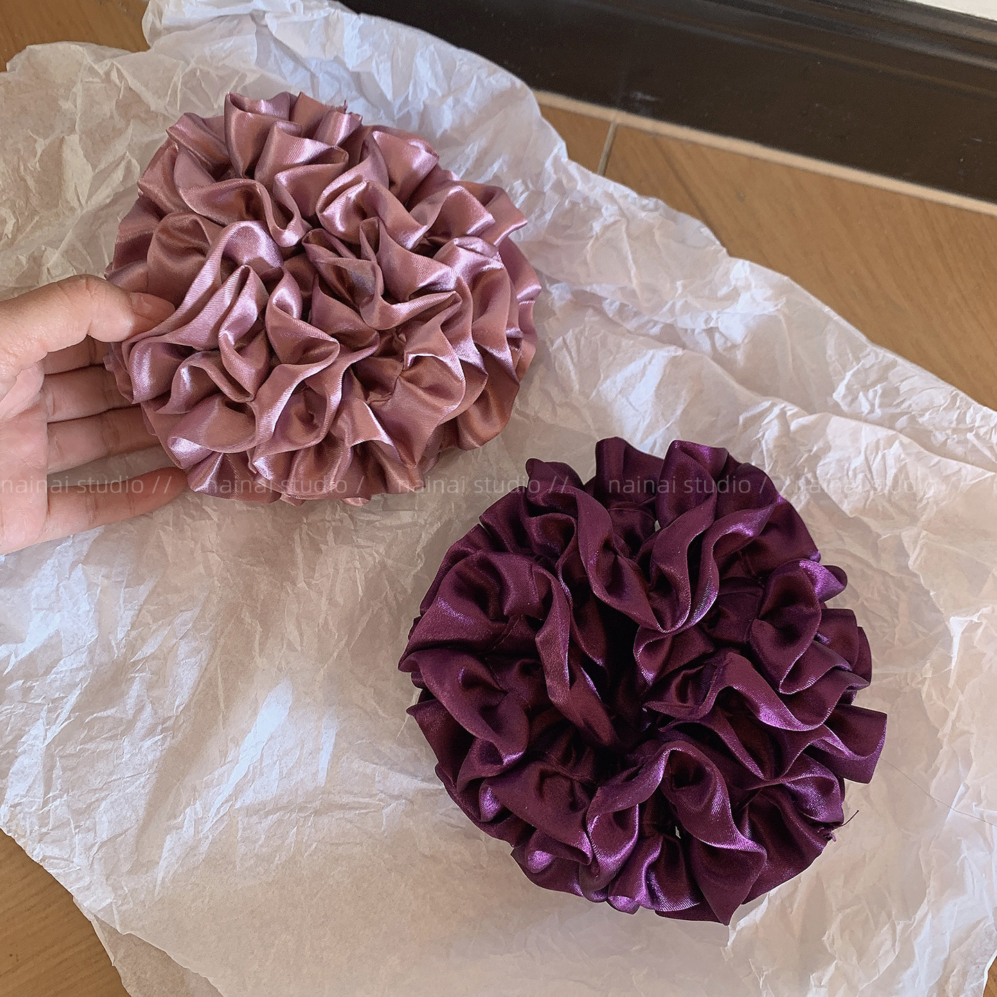 紫色花苞大肠发圈~法式复古绣球花缎面小花苞低马尾发绳丸子头女