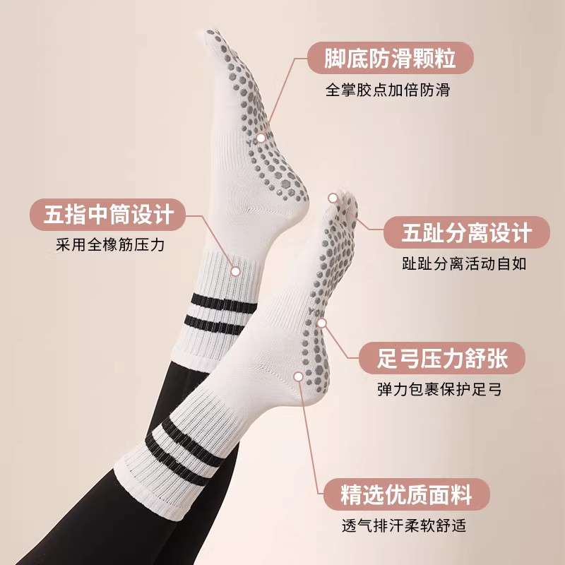 瑜伽袜女中筒防滑硅胶室内健身舞蹈普拉提运动成人地板五指瑜伽袜