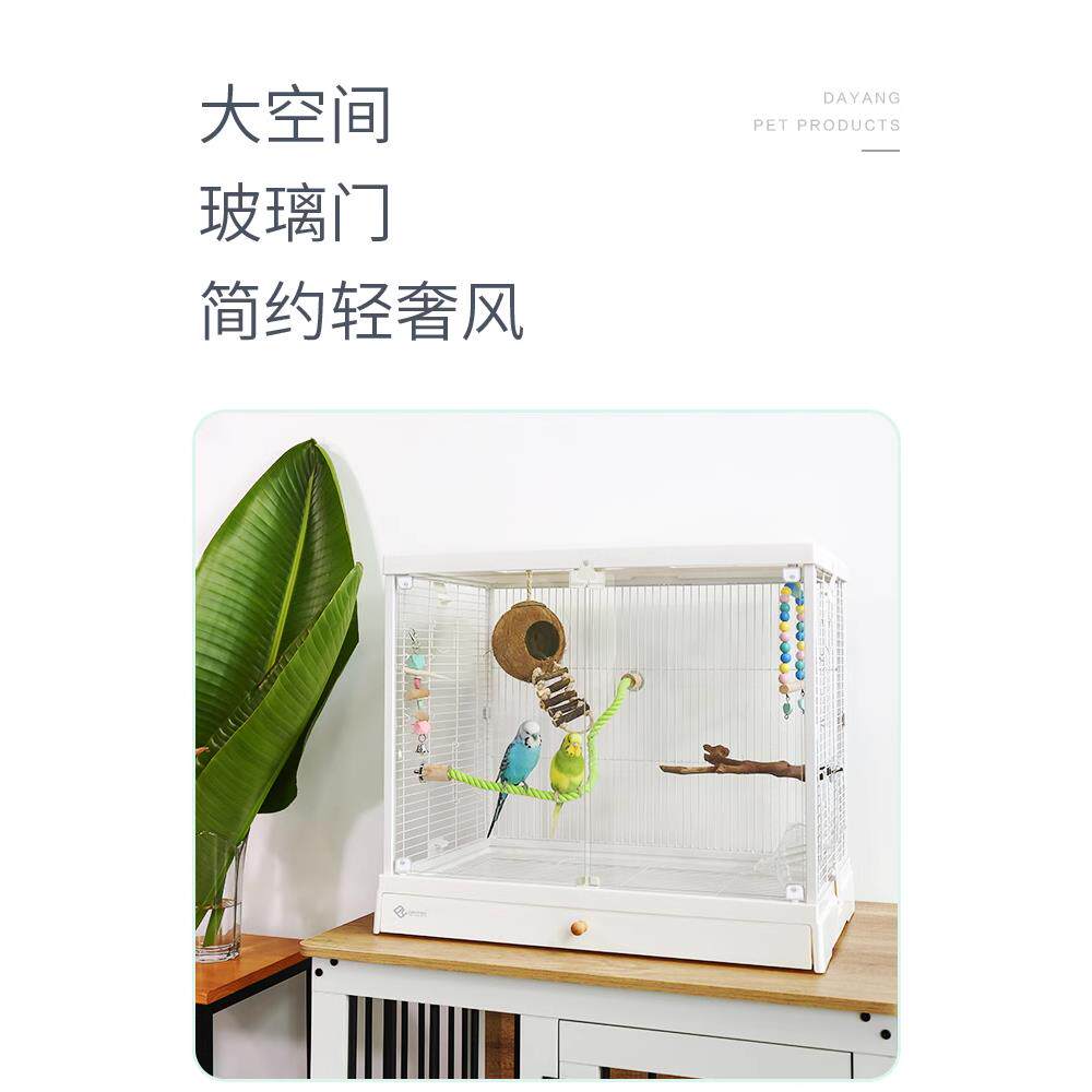 达洋鸟笼B6001观赏笼高透明全景玻璃别墅家用鹦鹉笼子虎皮牡丹