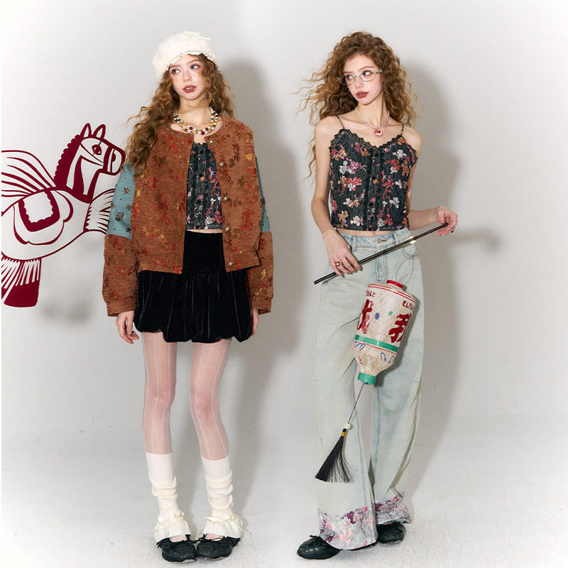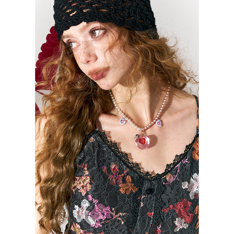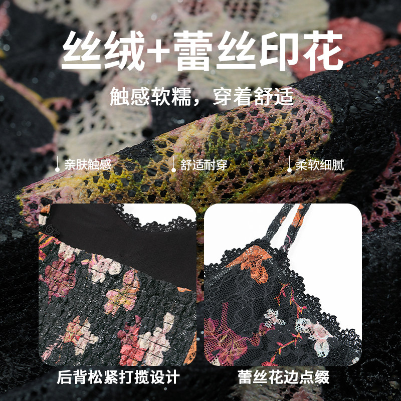 妖精的口袋丝绒蕾丝印花吊带背心女2026年春夏新款内搭绝美上衣
