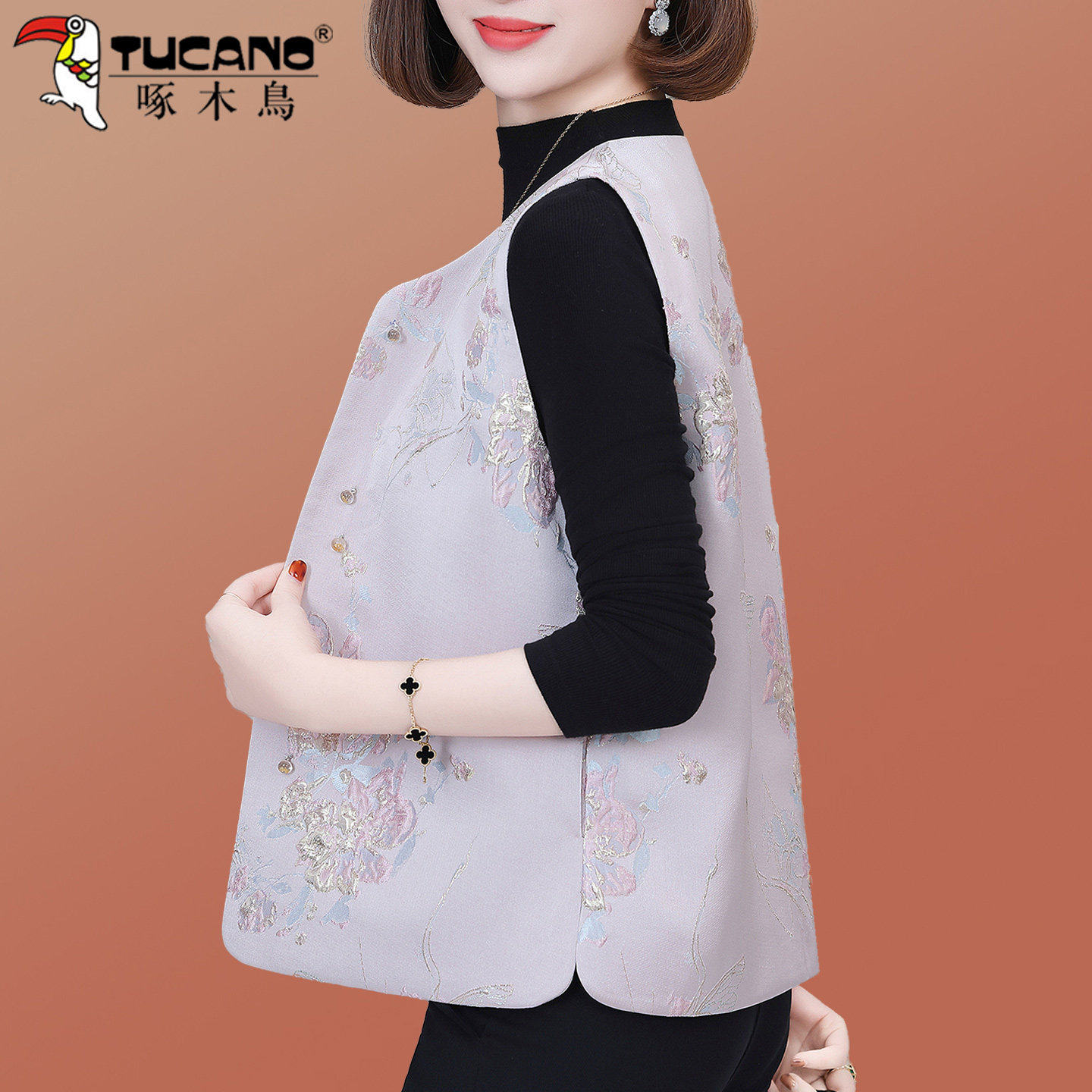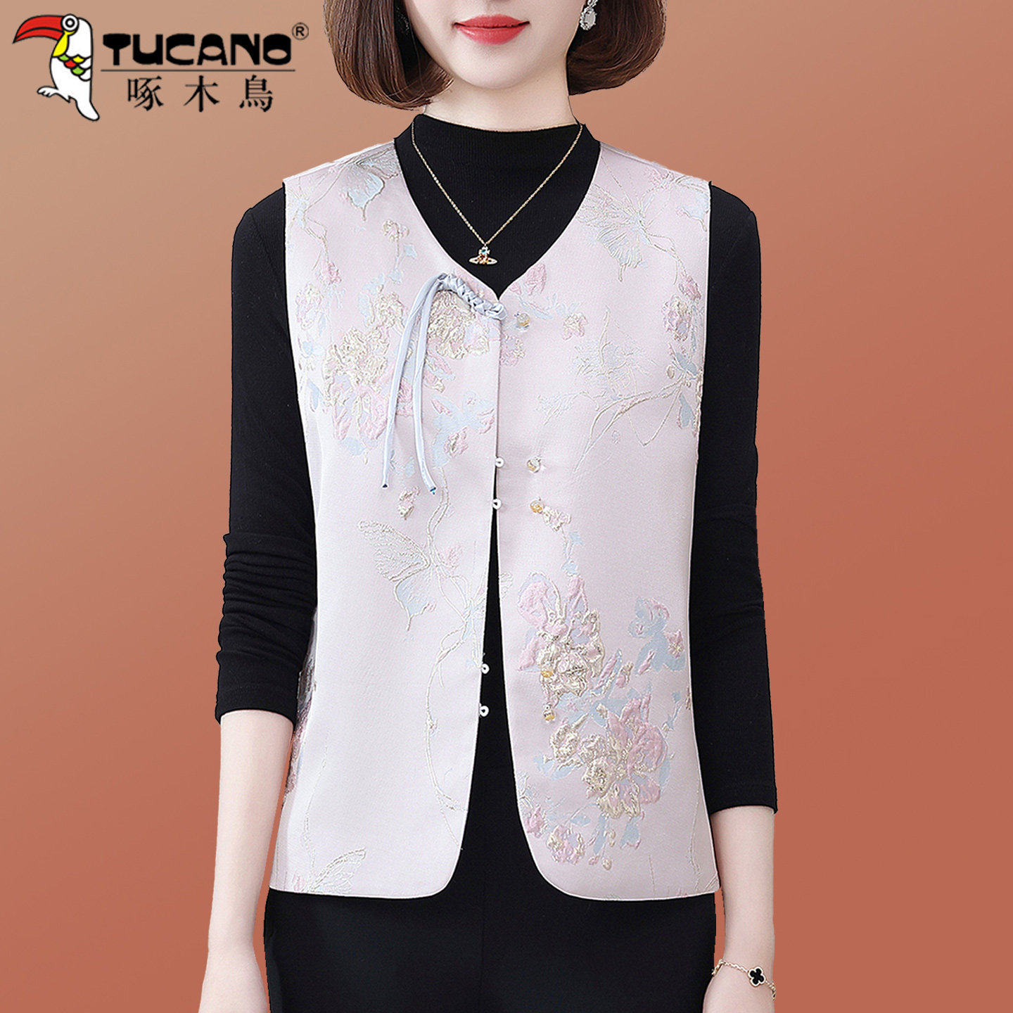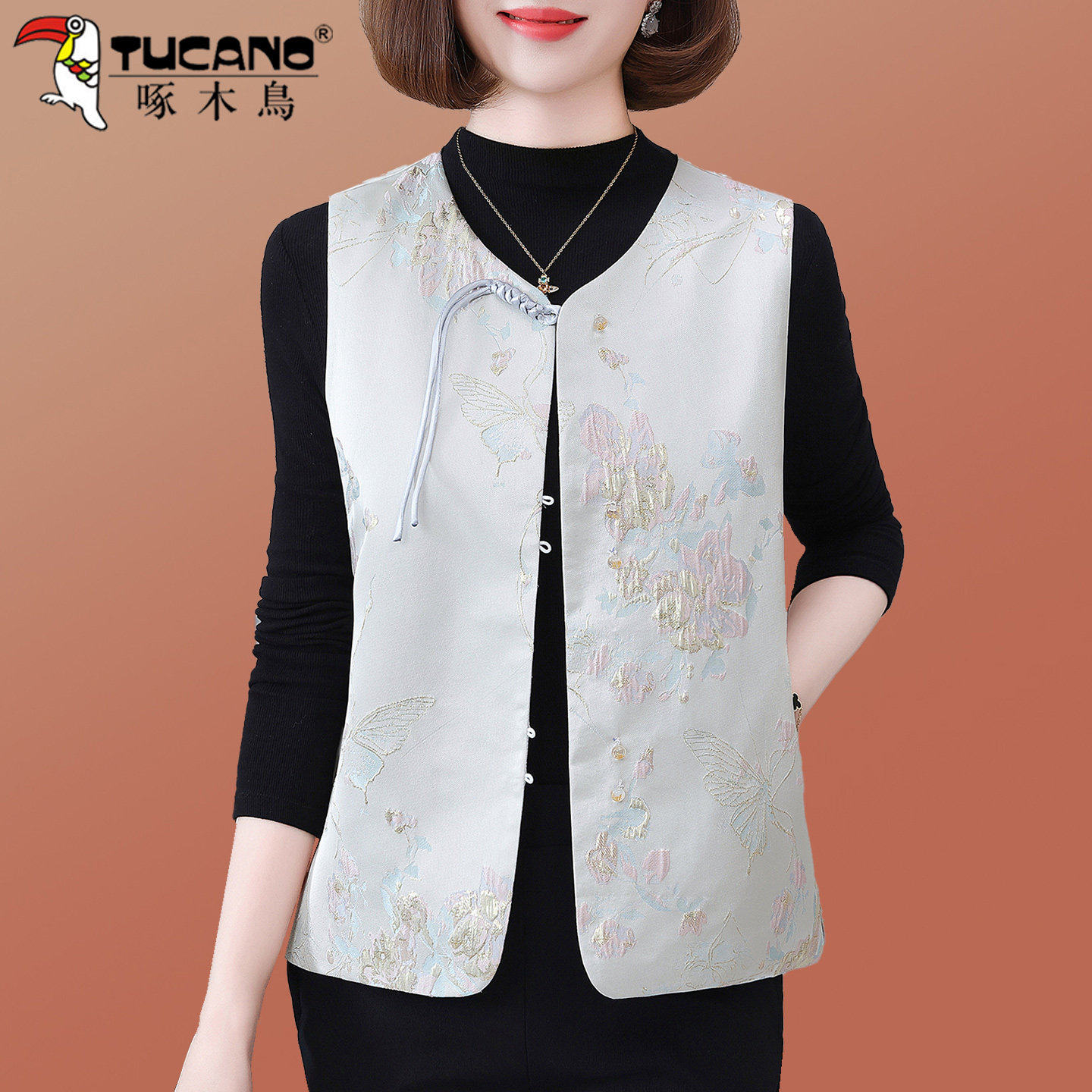 啄木鸟新中式国风马甲女春秋2026新款小个子妈妈马夹坎肩唐装外套