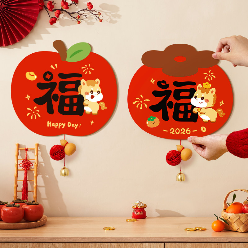 新年墙面装饰氛围布置过年墙纸2026马年新款墙贴过年贴纸门贴贺年