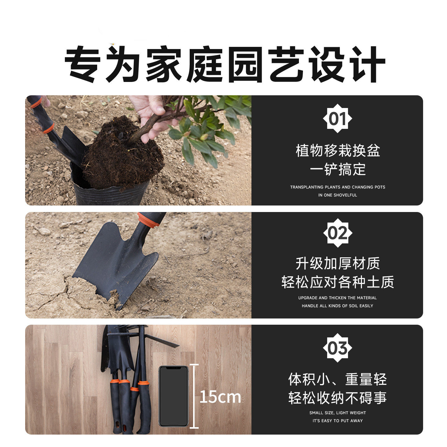 家用种花赶海工具小铲子种菜栽养花多肉套装园艺铁铲铁锹花铲锄头
