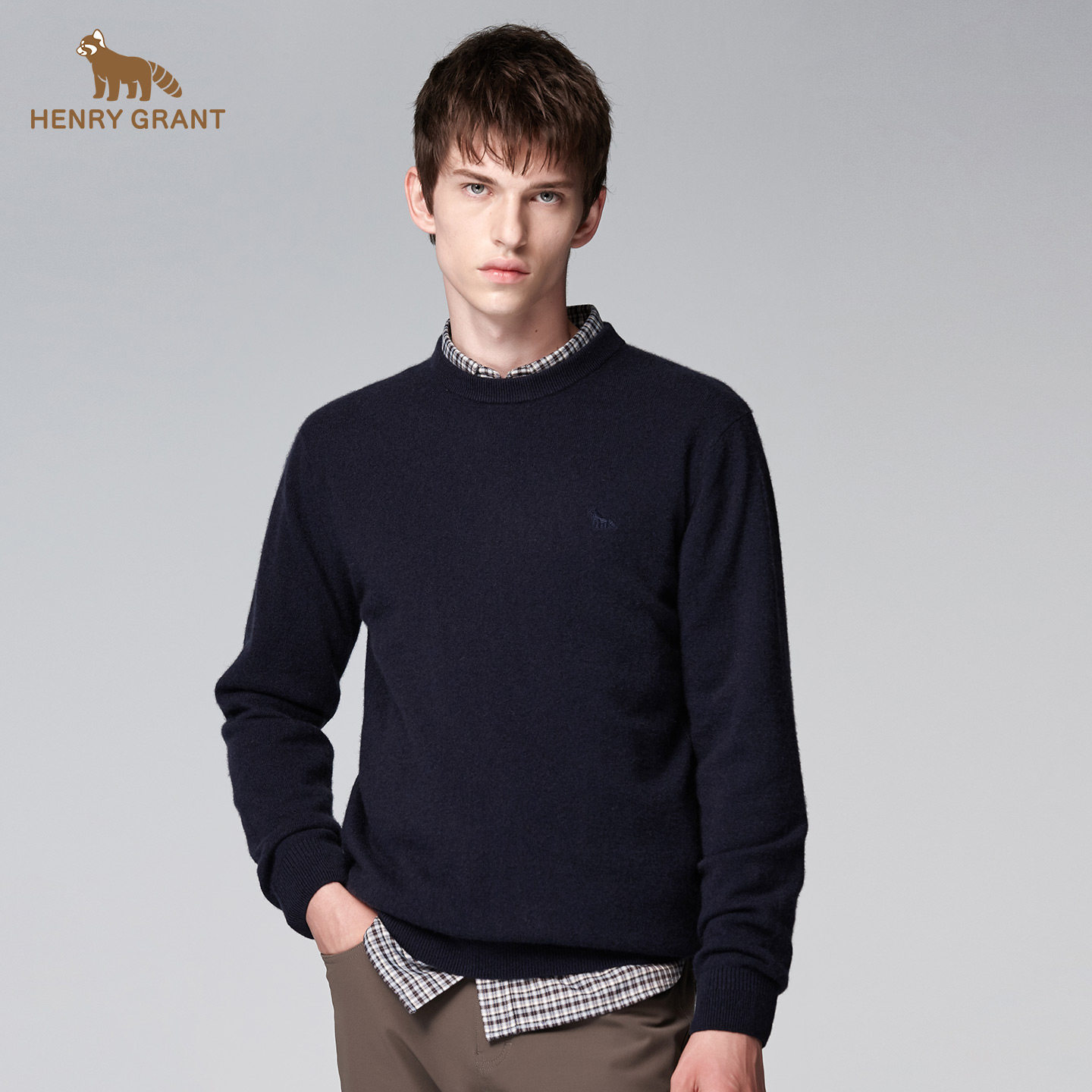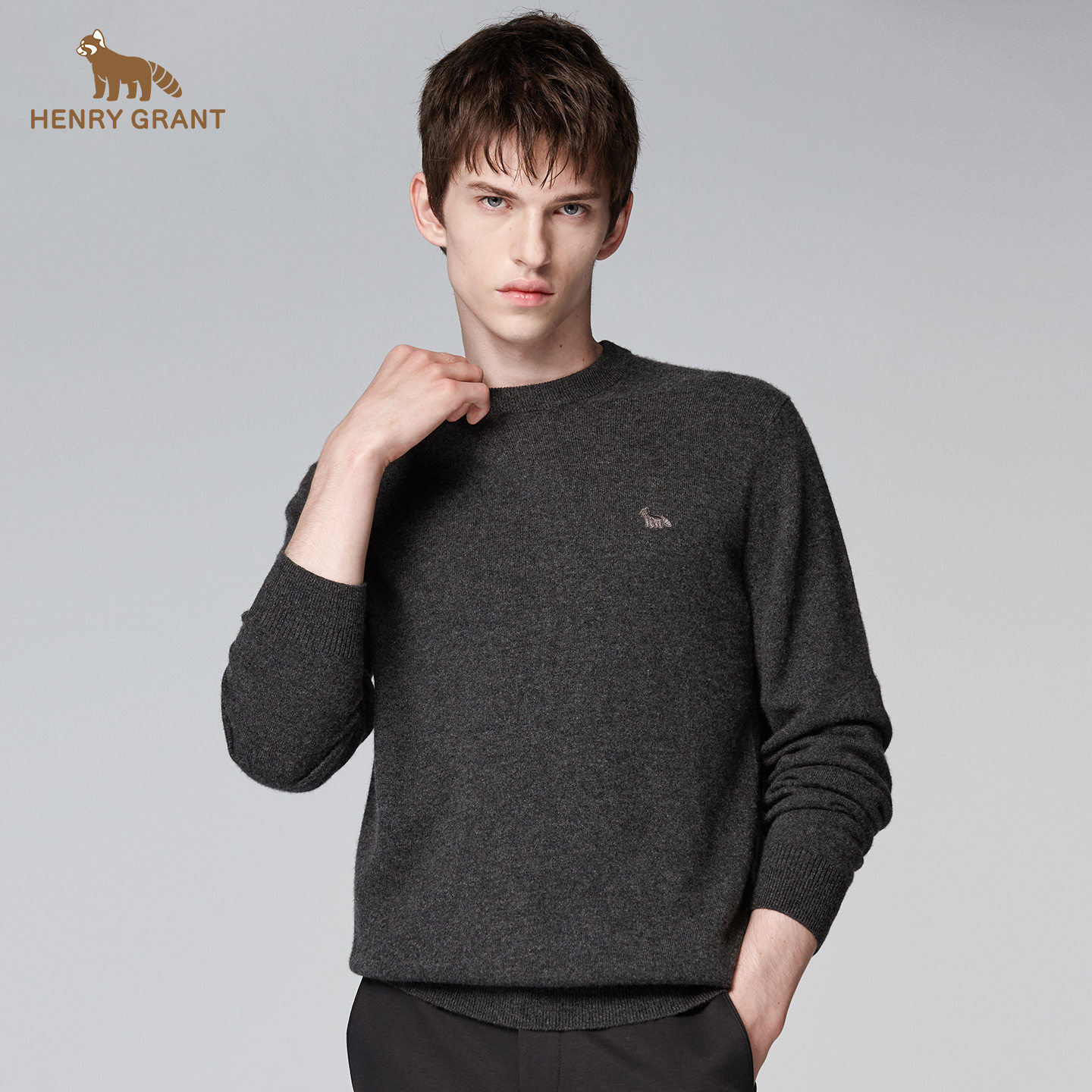 亨利格兰圆领羊毛衫男士2026春季保暖纯色百搭打底上衣休闲羊毛衫