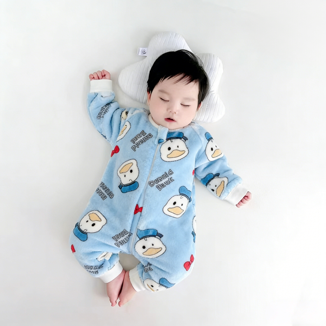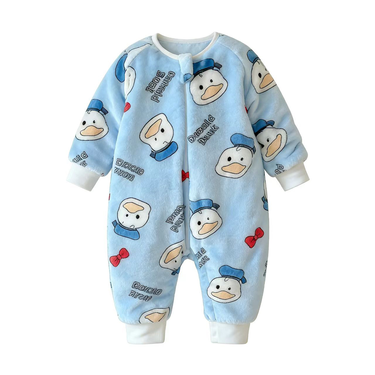 婴幼儿法兰绒连体睡衣新款可爱卡通风单层双面绒爬服居家新生婴儿
