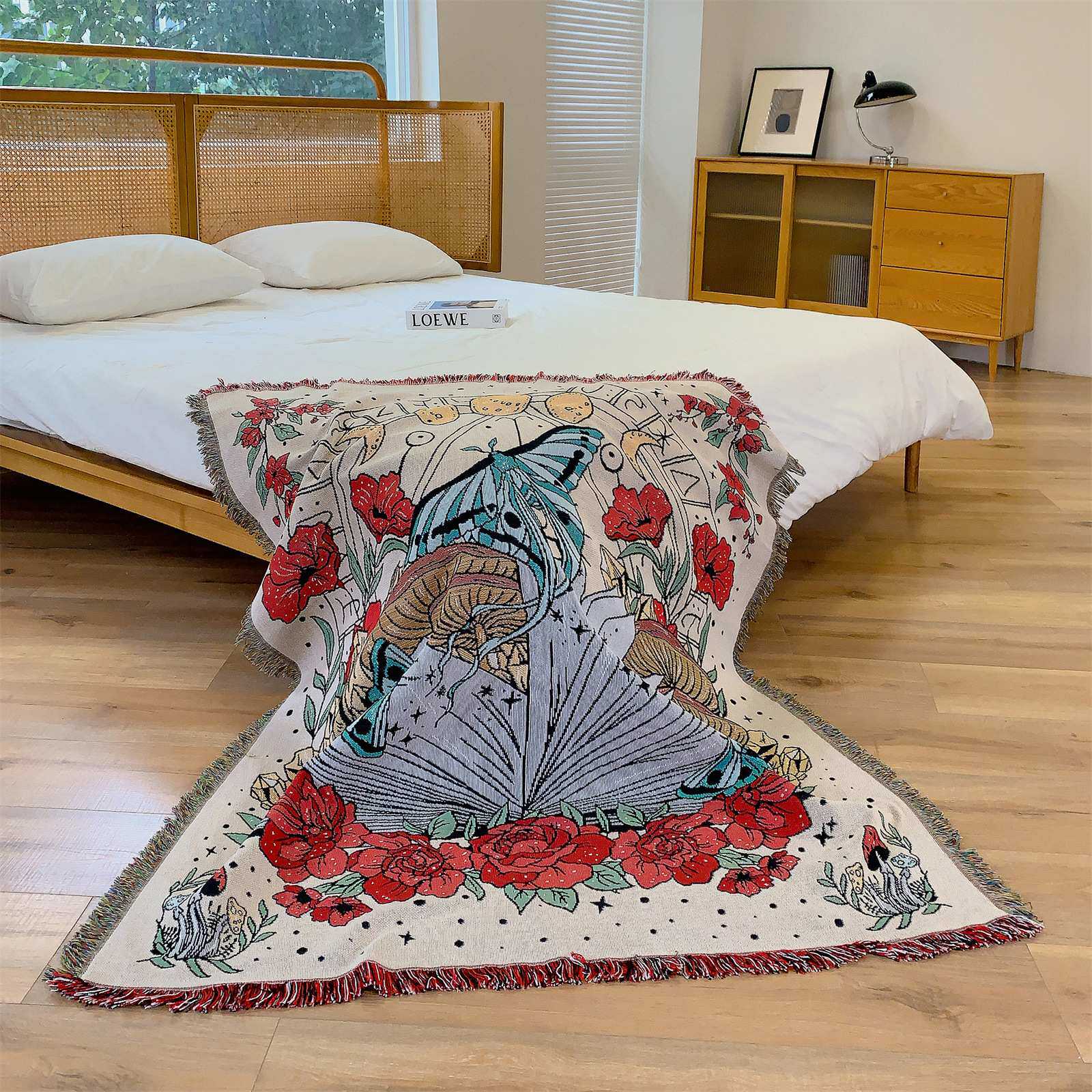 蝴蝶露营毯子ins风多功能线毯户外野餐毯沙发毯盖毯波西米亚毯