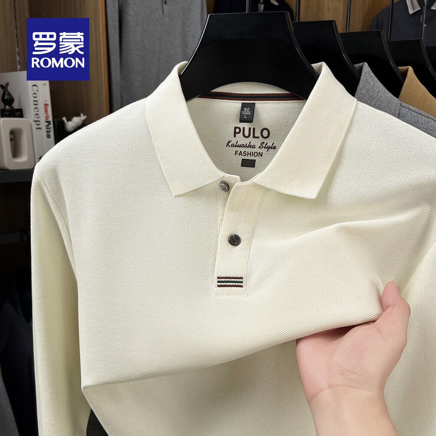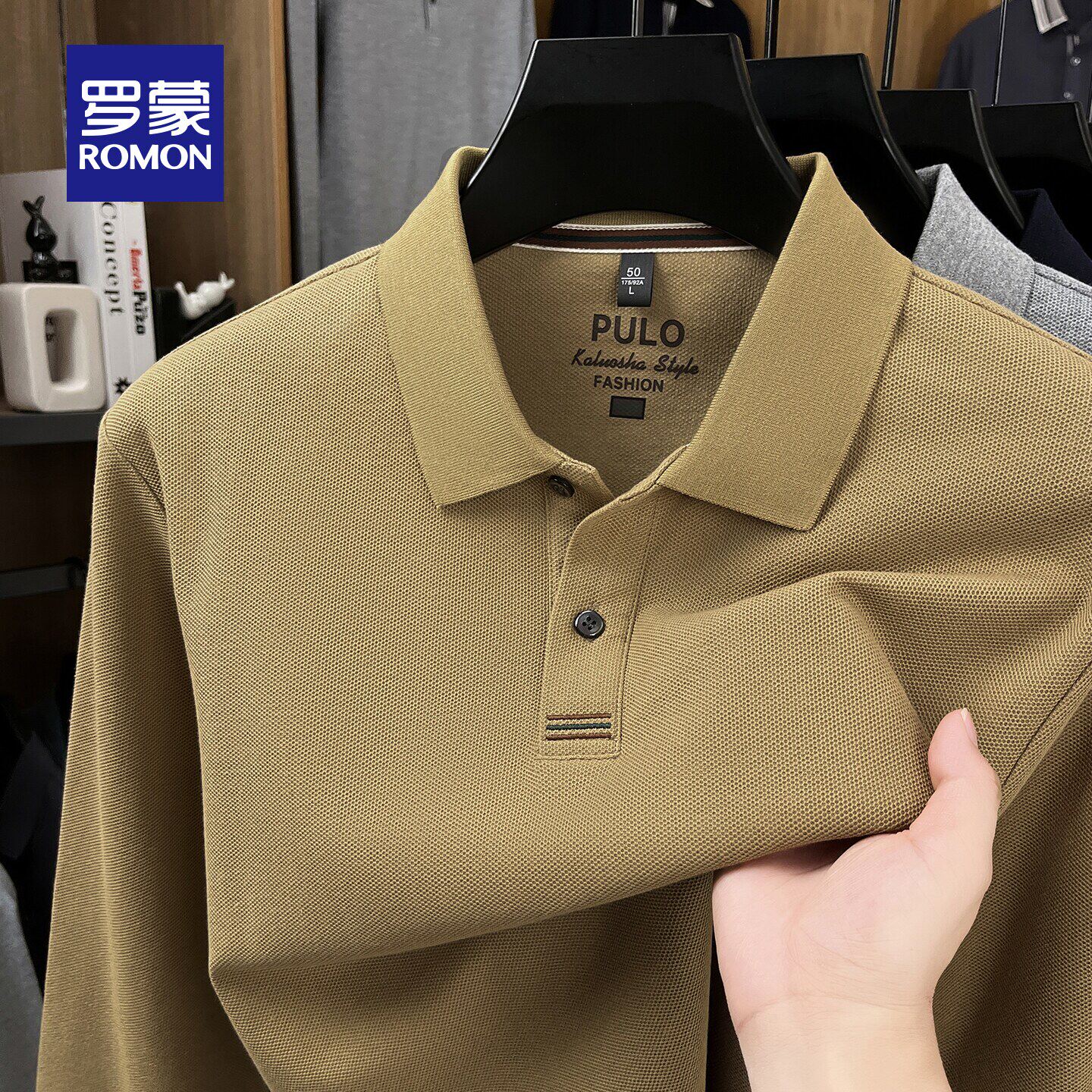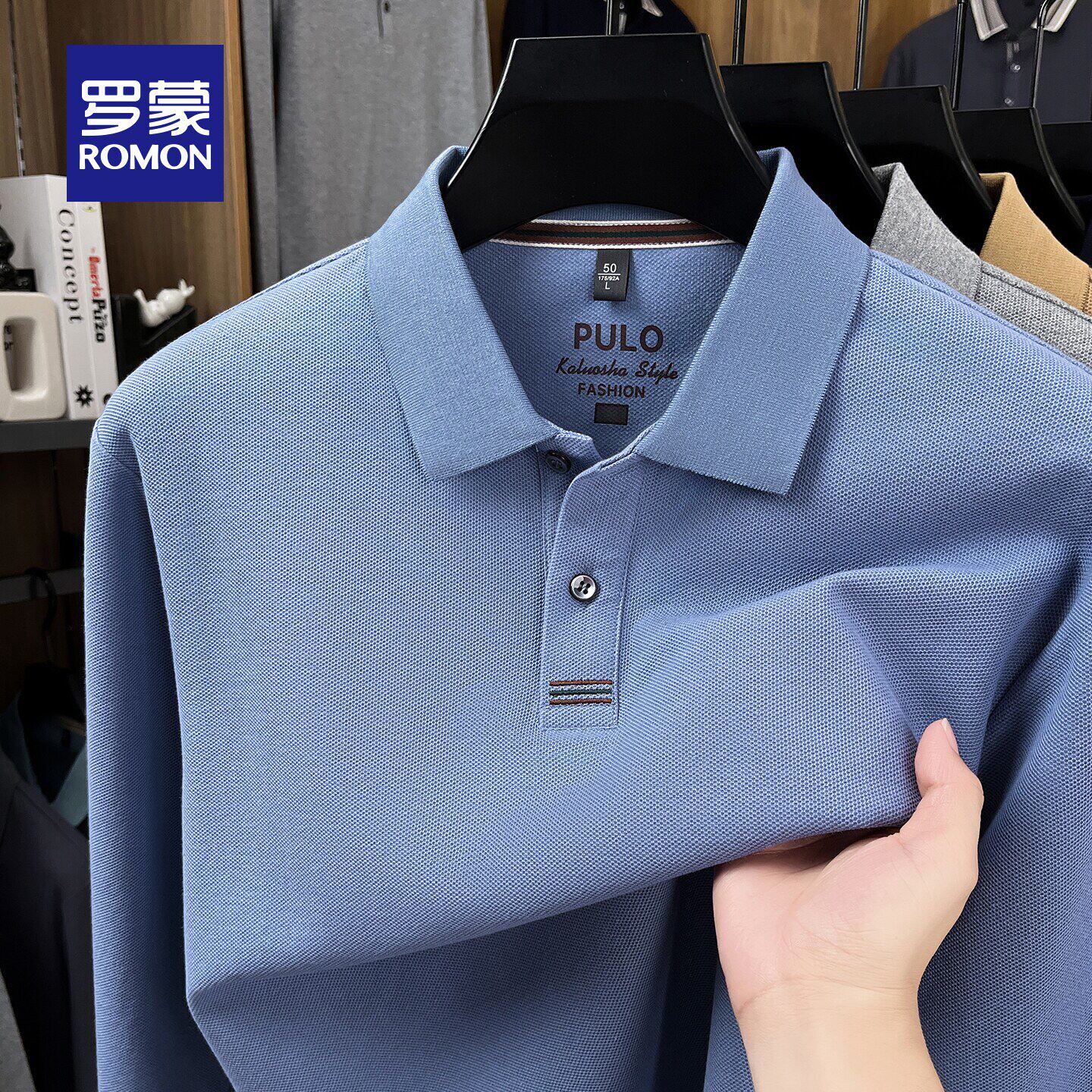 【纯棉】罗蒙男士商务休闲长袖POLO衫2026春季新款休闲百搭T恤衫