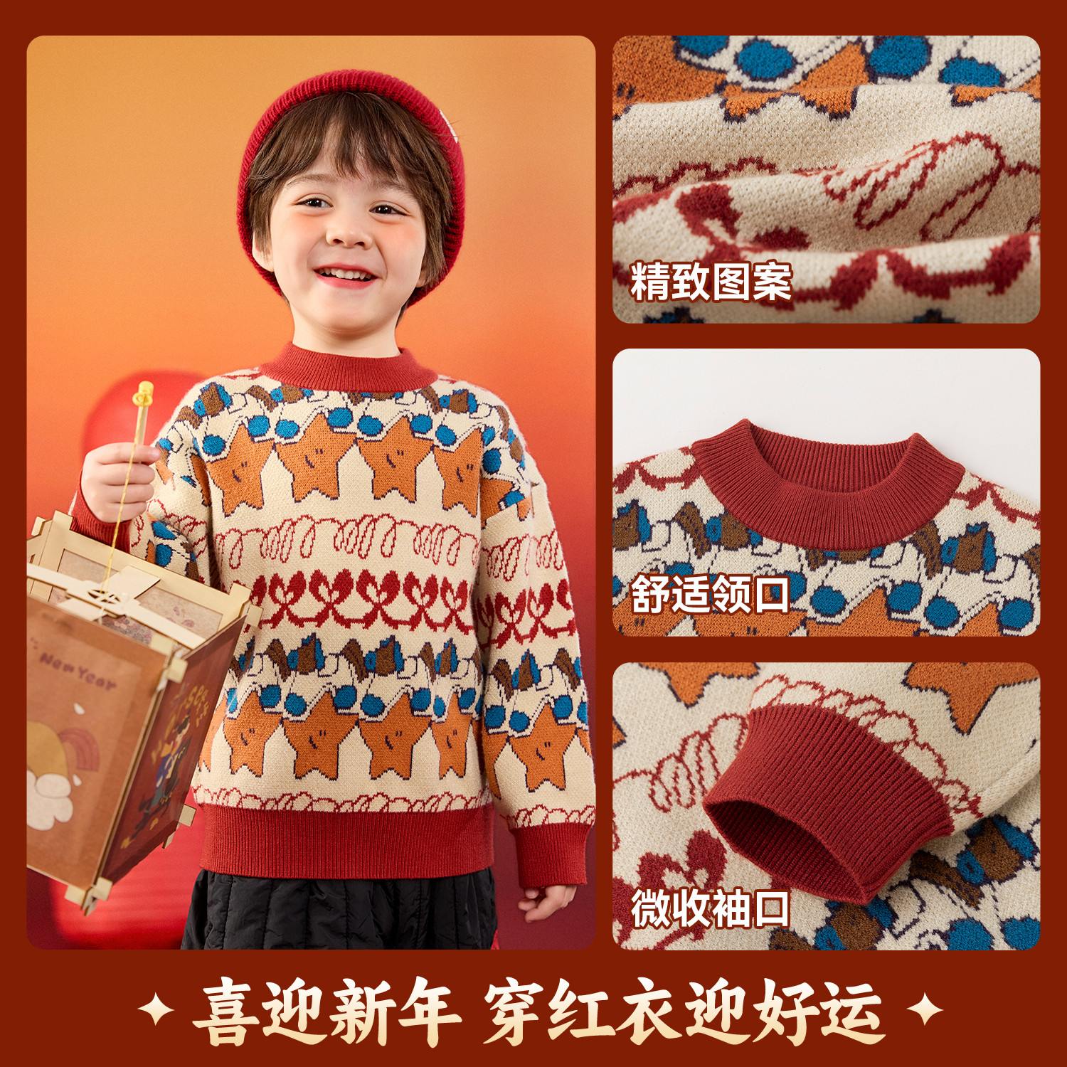 嘟嘟家儿童拜年服红色新年衣服过年毛衣宝宝冬季男童女童上衣童装