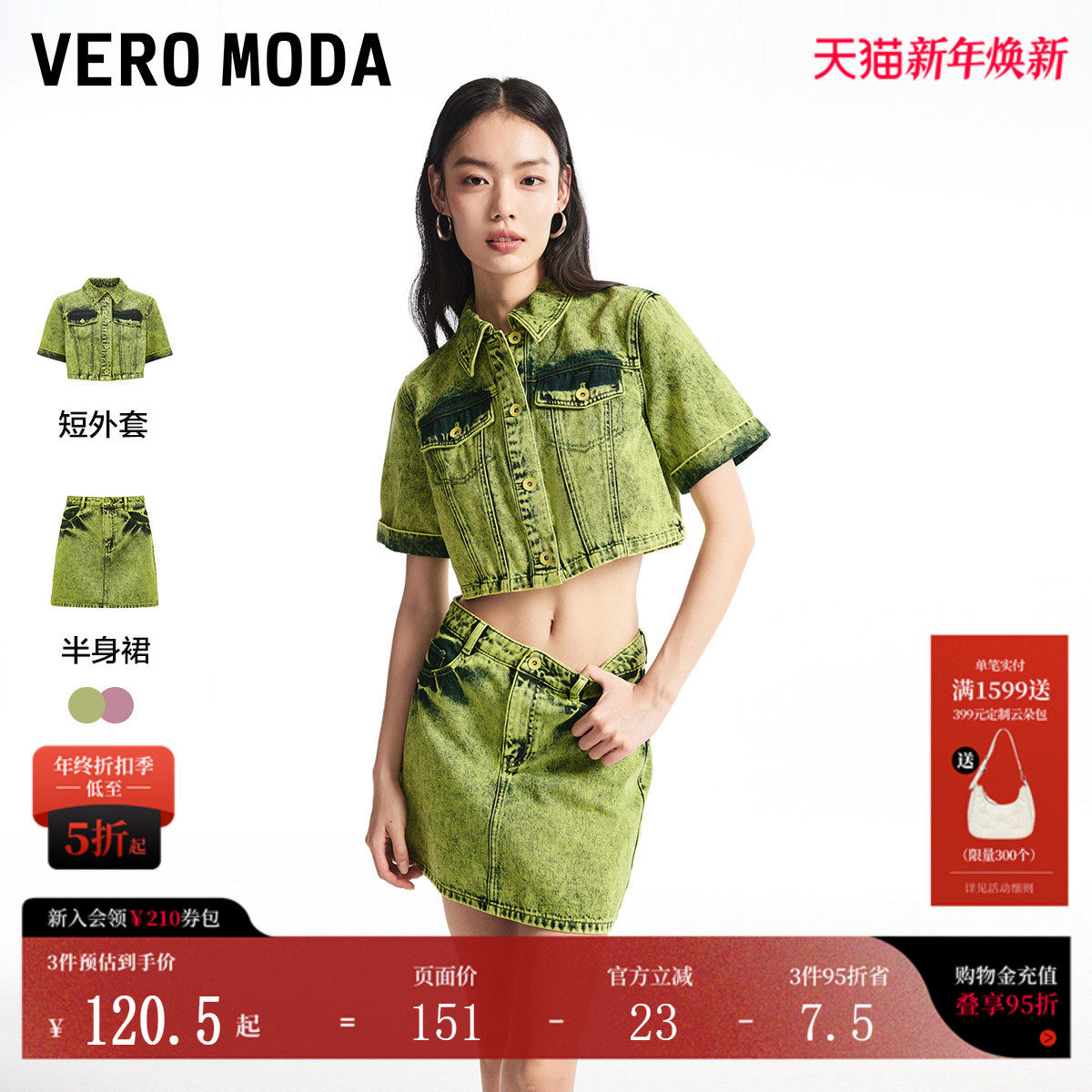 Vero Moda牛仔套装女秋冬纯棉翻领水洗短裙夹克外套324357001