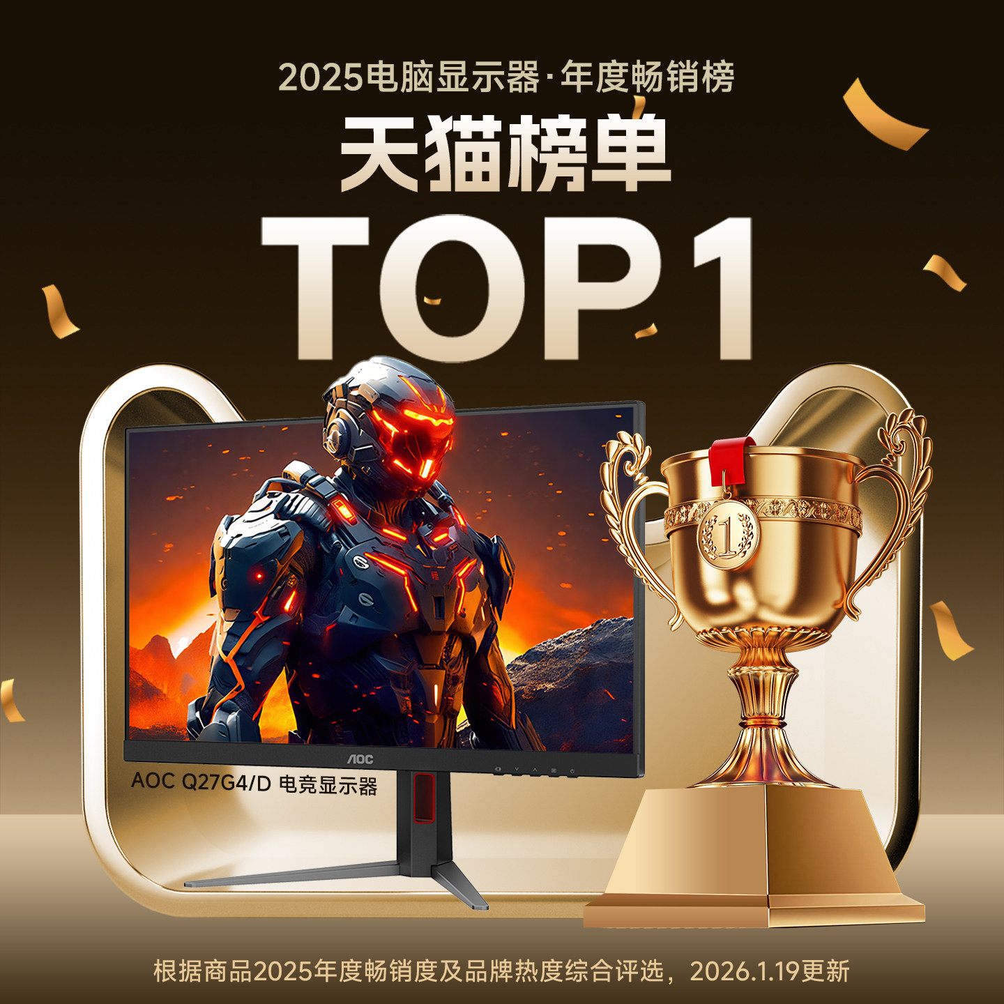 AOC 27英寸2K高清IPS电竞200Hz台式电脑显示器Q27G4/D屏幕240高刷