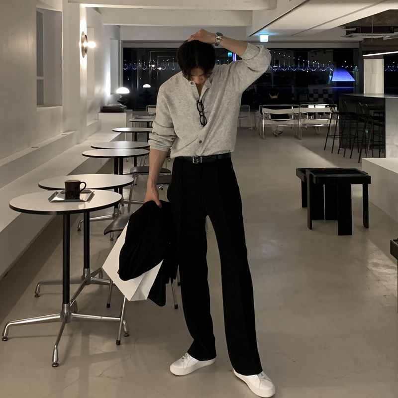 碧舍男士韩版宽松黑色长裤休闲百搭垂坠高级感西裤春秋薄款直筒裤