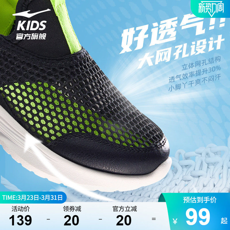 逐夏|鸿星尔克童鞋儿童网面凉鞋一脚蹬夏季大网眼男童鞋透气网鞋