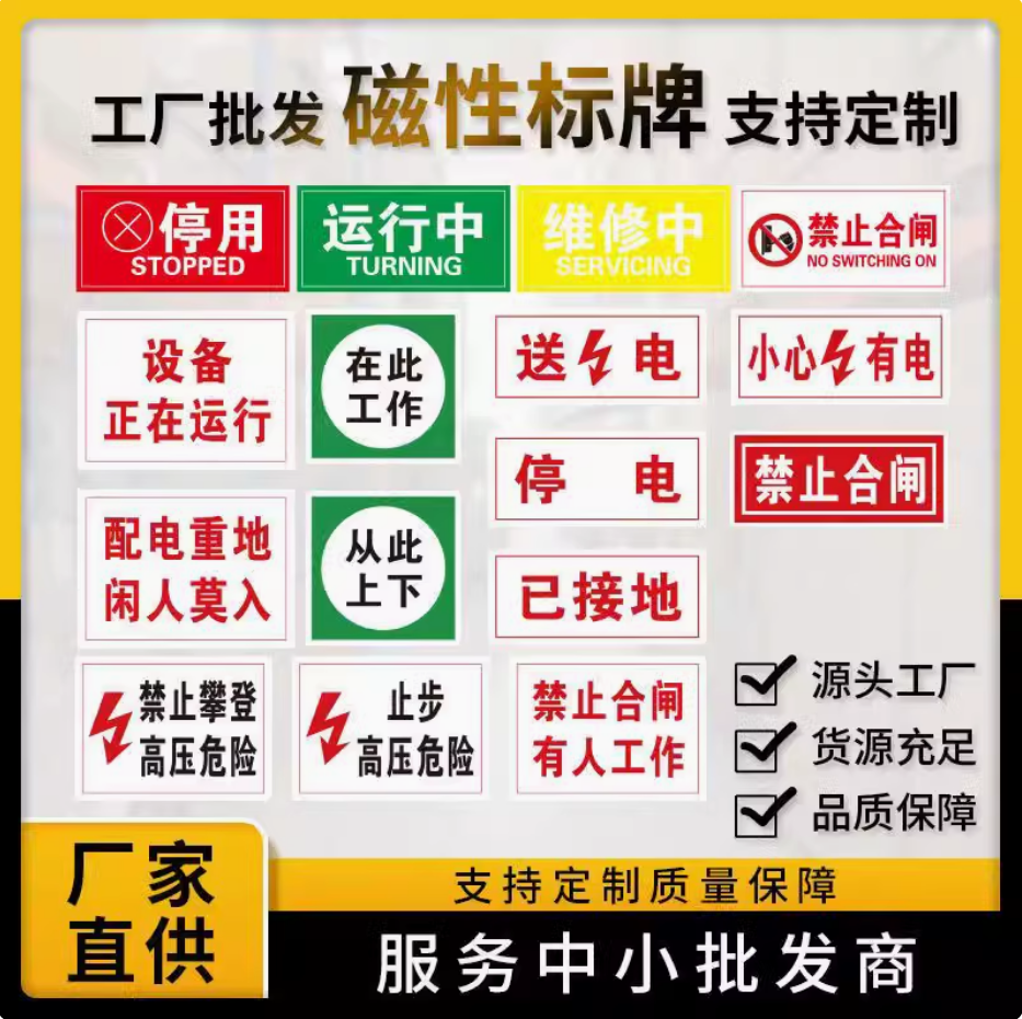 磁吸电力标识牌安全警示牌磁铁可吸配电室配电箱停电送电运行合闸