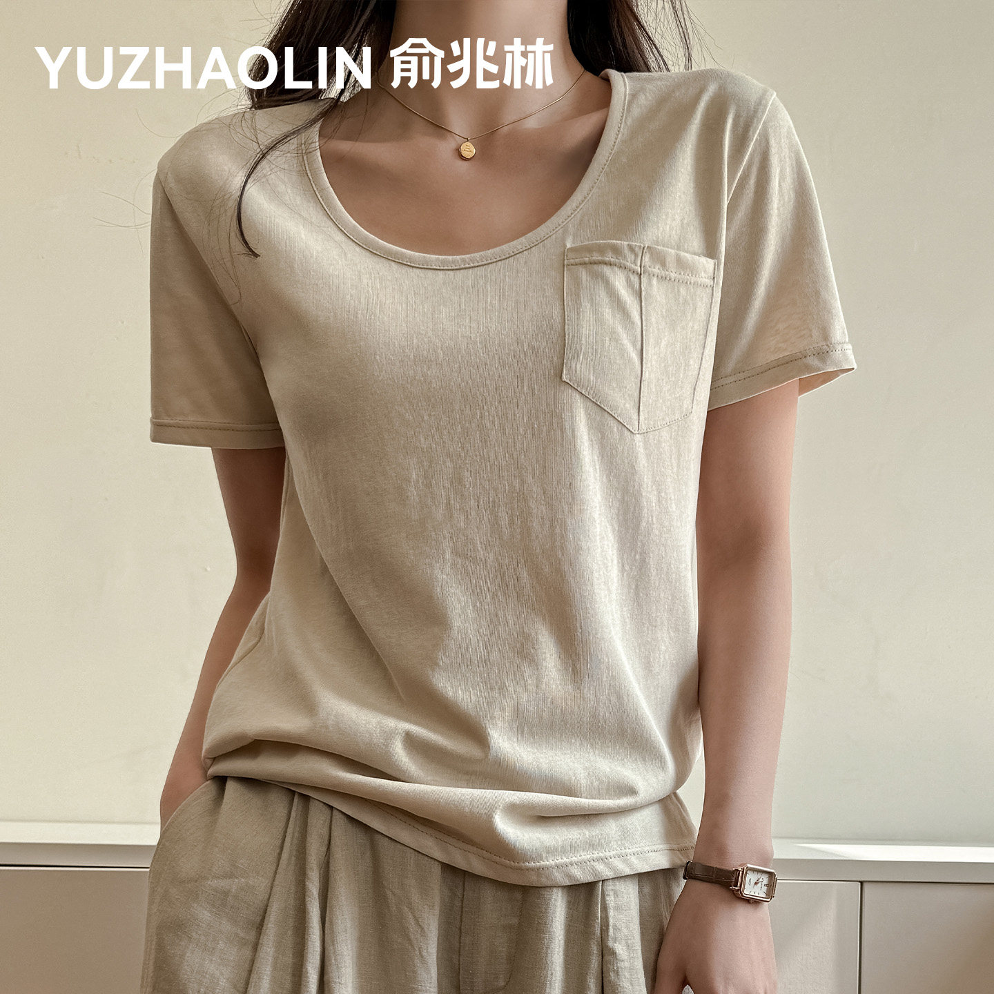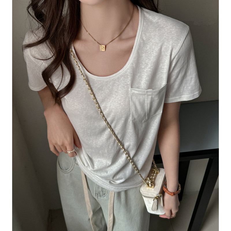大洪官方轻氧T高级休闲简约显瘦圆领短袖T恤时尚宽松气质纯色上衣