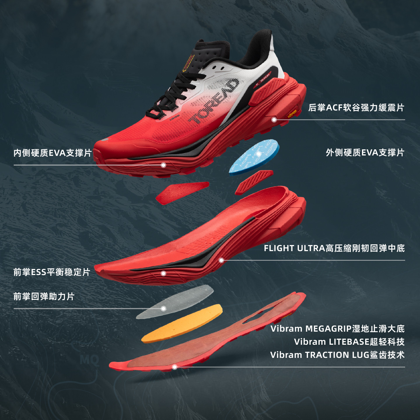 【飞越PRO】探路者VIBRAM户外跑鞋男轻量透气防滑抓地越野跑鞋女