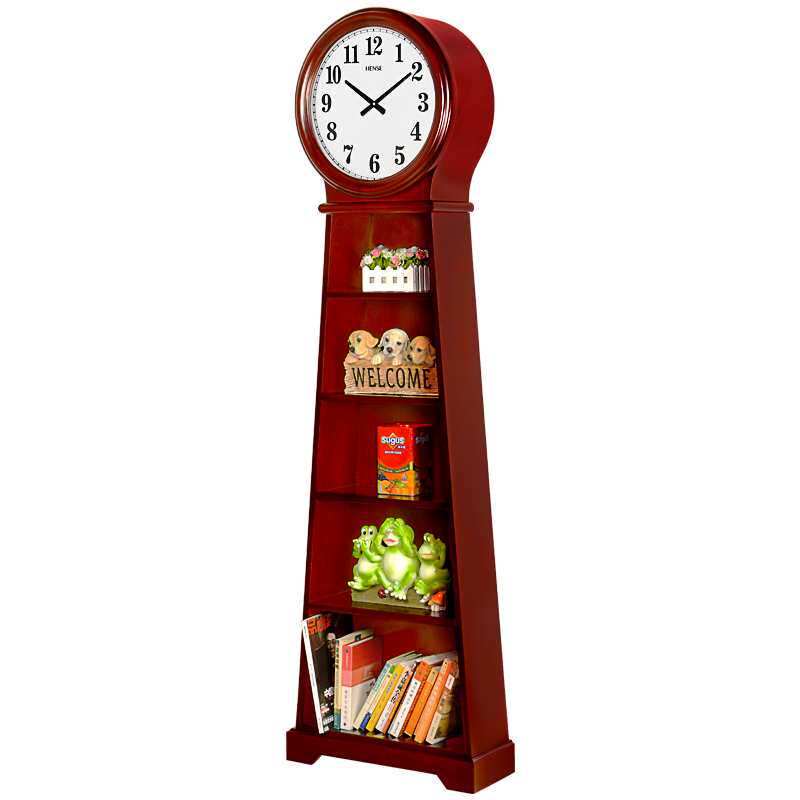 实木落地钟书柜客厅现代简约装饰创意储物柜石英落地电子钟HG635