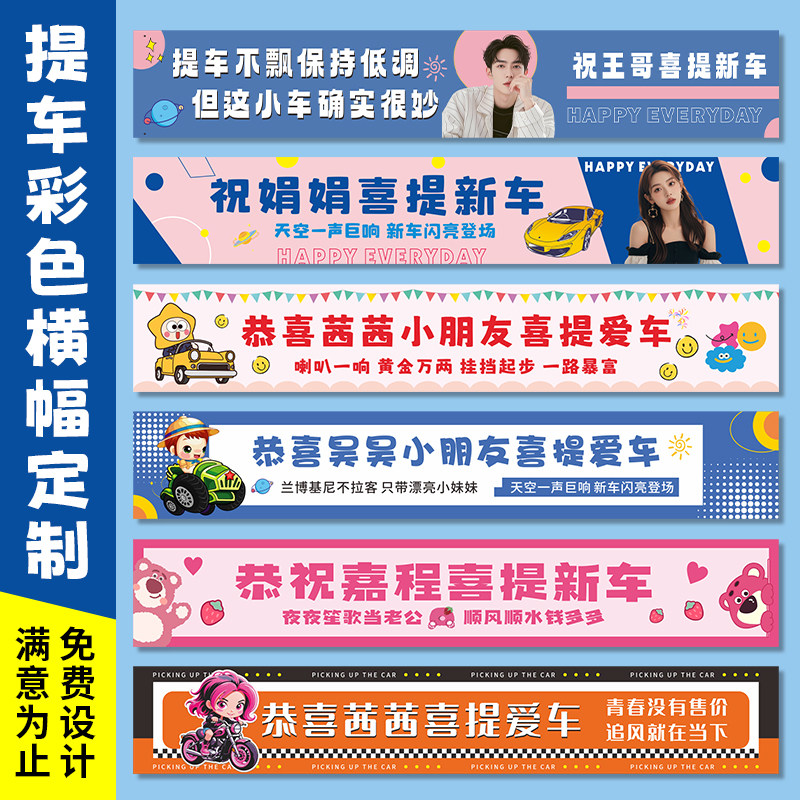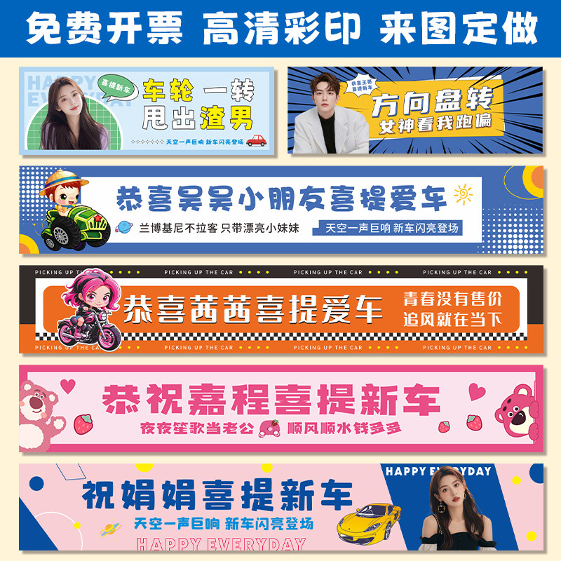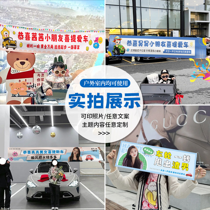 提车横幅定制宝宝喜提新车仪式装饰彩色条幅儿童小朋友闺蜜交车搞怪氛围感布置旗帜制作4S店开单庆祝拉条定做