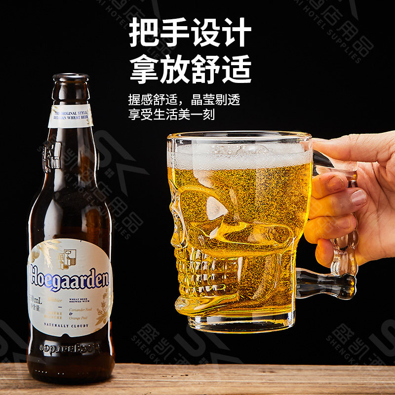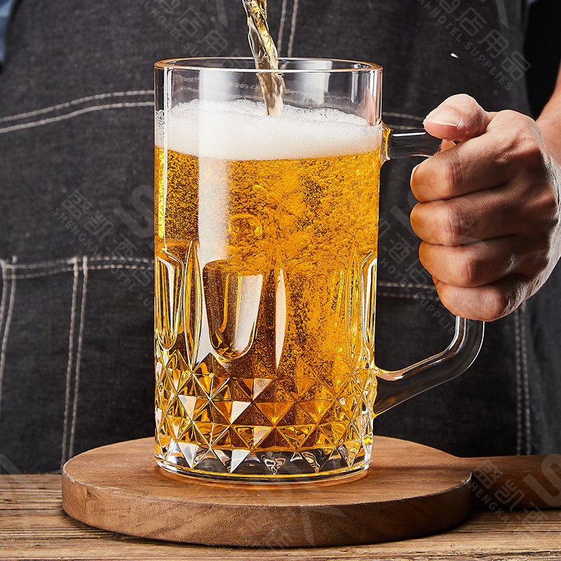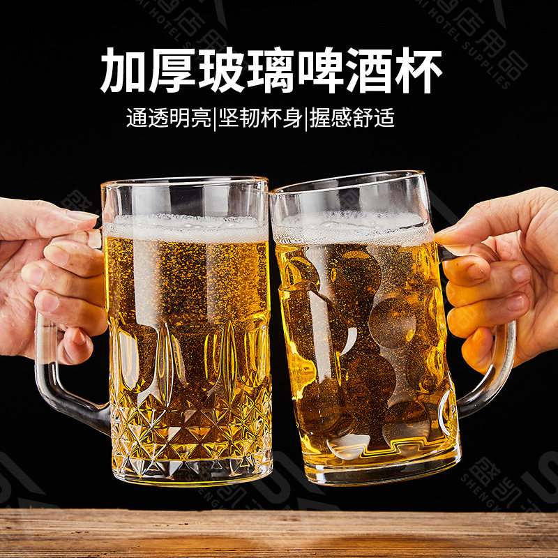 【新款】加厚啤酒杯带把扎啤杯玻璃网红英雄杯大容量泡茶水杯商用