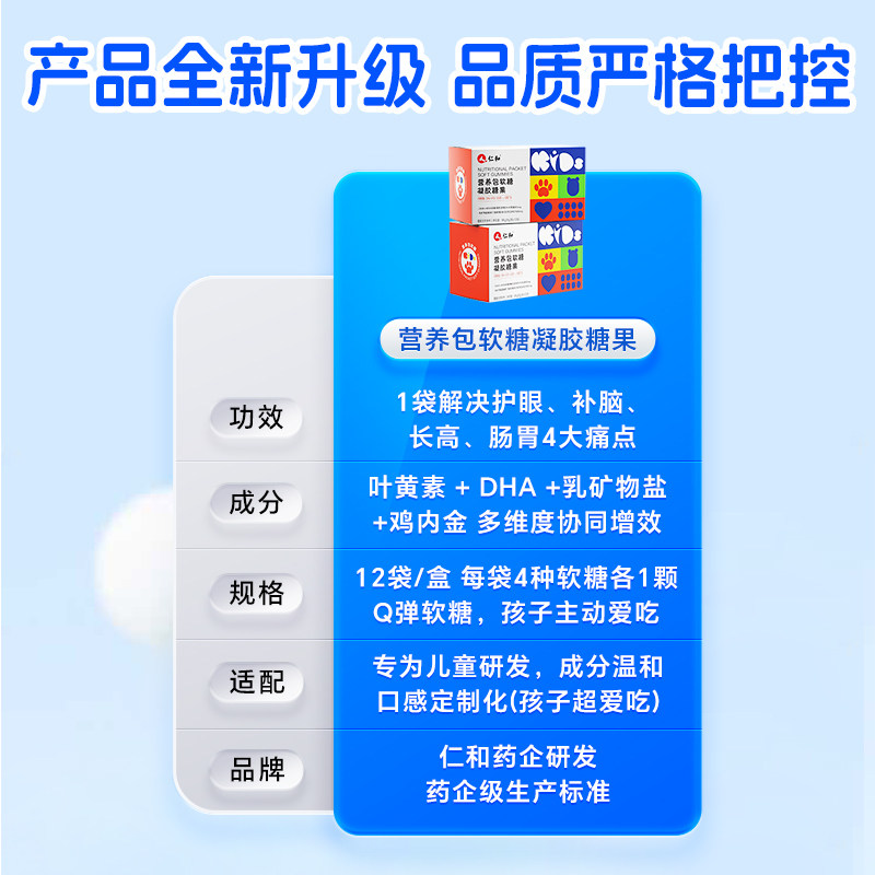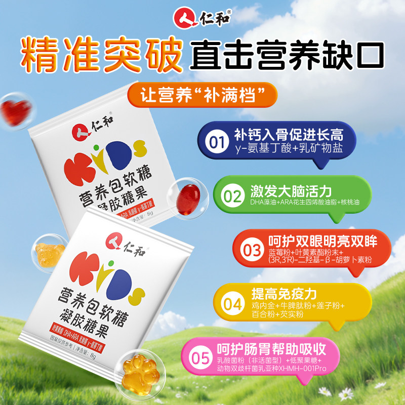 仁和营养包软糖儿童氨基丁酸DHA叶黄素乳酸菌钙铁锌ARA综合维生素